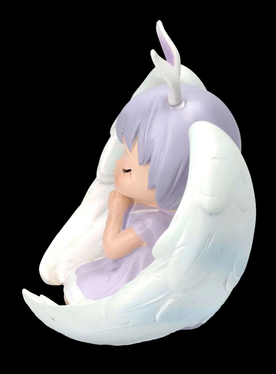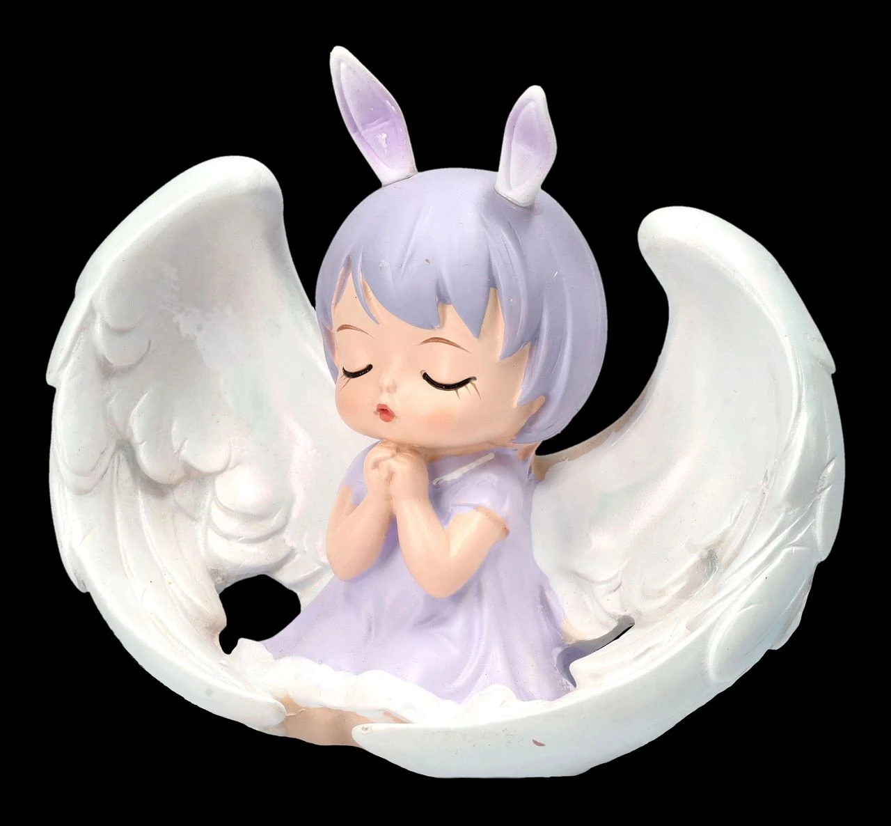 Das kleine betende Engelchen im lila Kleidchen, das eigentlich eher wie ein kleines Häschen aussieht, ist total niedlich. Versunken in ein Gebet sitzt das Schutzengelchen brav auf jedem Platz, auf den es gesetzt wird und wacht über seinen Schützling. Das 8,5 cm hohe, 10 cm breite und 5,5 cm tiefe putzige betende Engelchen mit den großen Flügeln wurde aus liebevoll handbemaltem Kunststein (Polyresin) gefertigt. Gemeinsam mit den anderen Schutzengelchen aus unserem Shop ist es eine niedliche Frühlingsdekoration und ein süßes Geschenk für alle, die einen kleinen zusätzlichen Schutzengel brauchen.