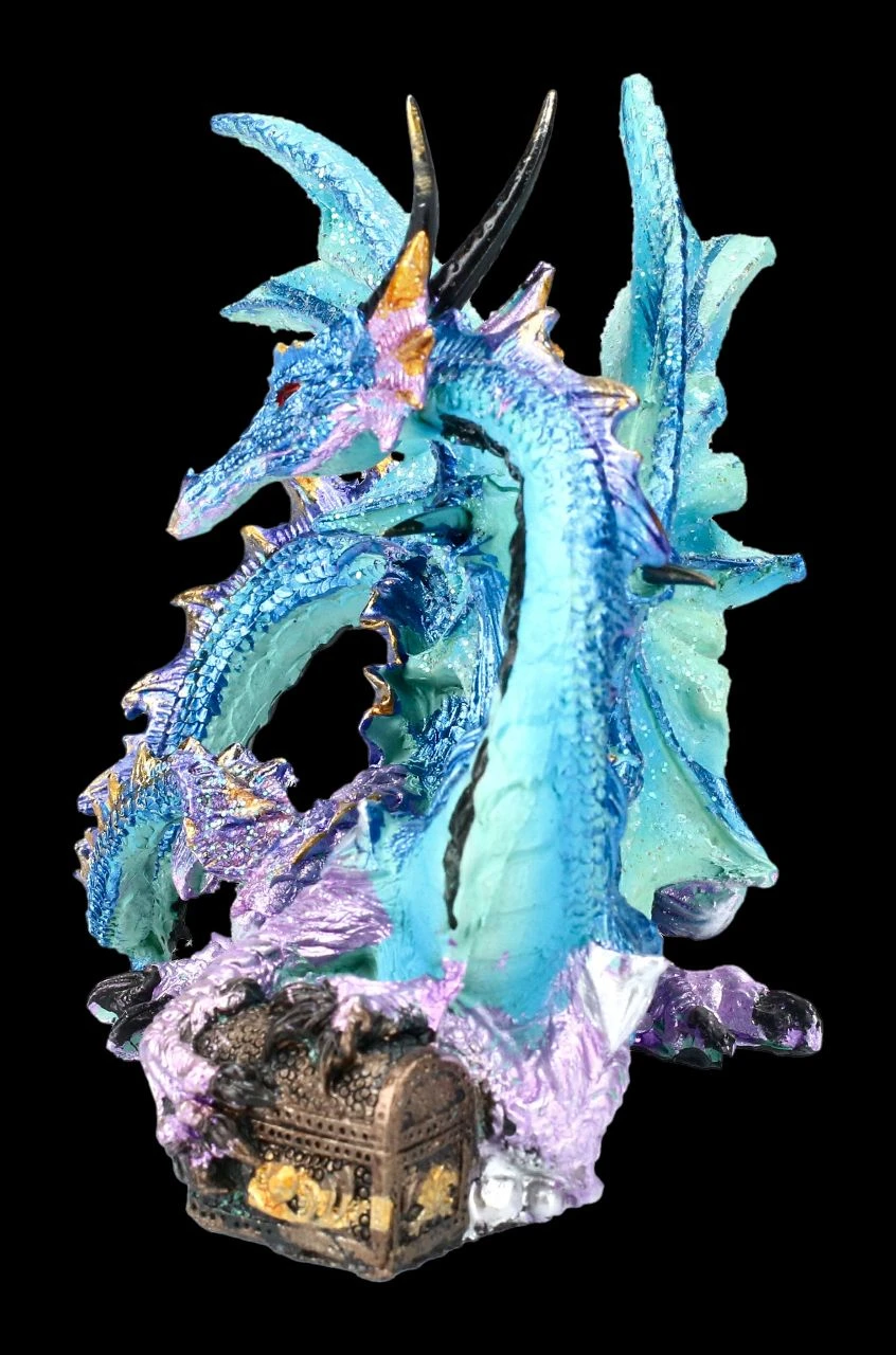 Blau ist eine absolut magische Farbe. Das dachte sich diese Drachendame Piasa bestimmt auch, denn sie ist ganz sichtlich begeistert von dem strahlenden Blau. Die hellblaue Drachen Figur mit der Höhe von 10 cm, der Breite von 12,5 cm und der Tiefe von 8 cm wurde liebevoll aus handbemaltem Kunststein (Polyresin) gefertigt. Über Piasa als Geschenk werden sich große und kleine Drachenfreunde freuen.