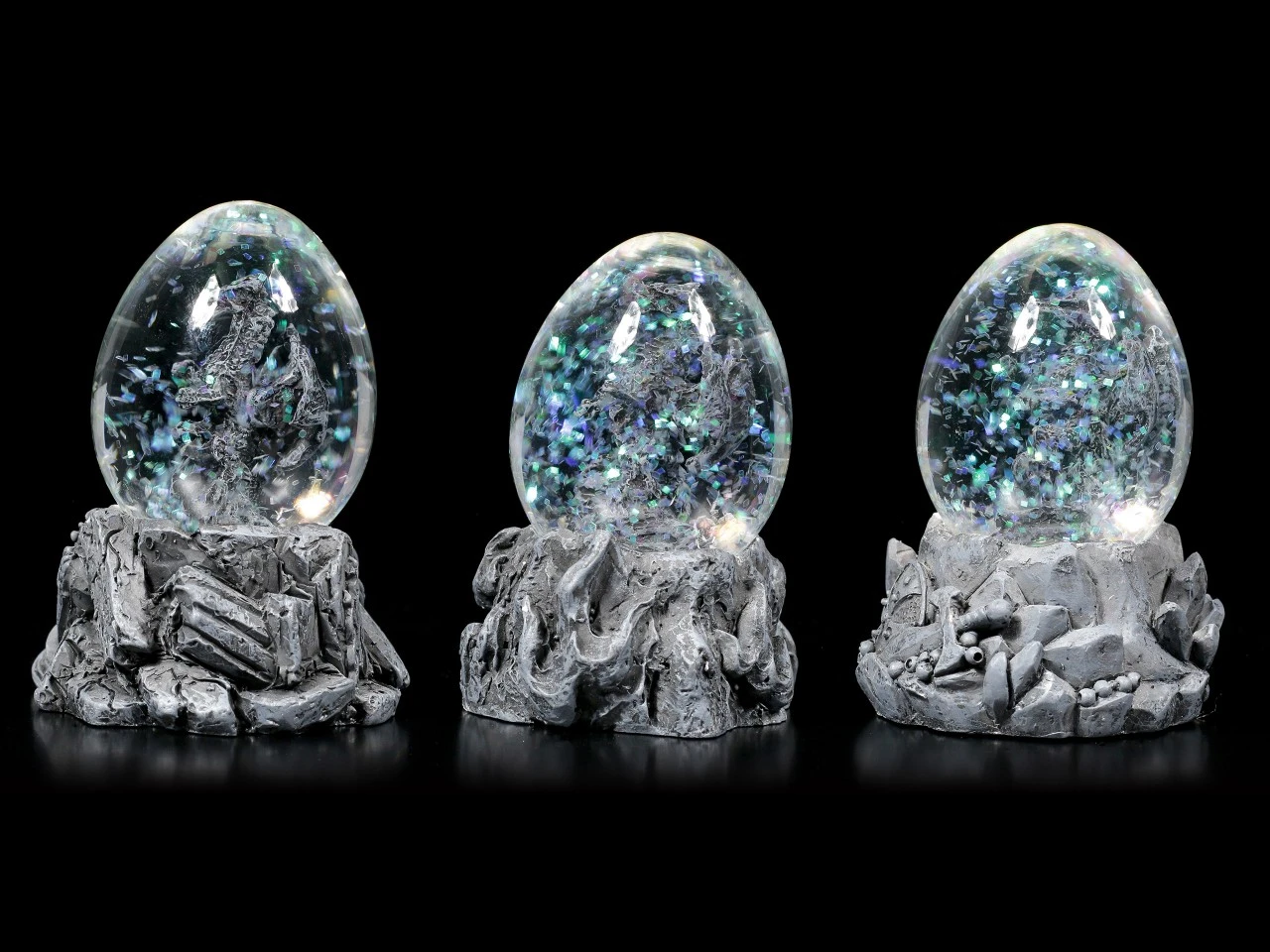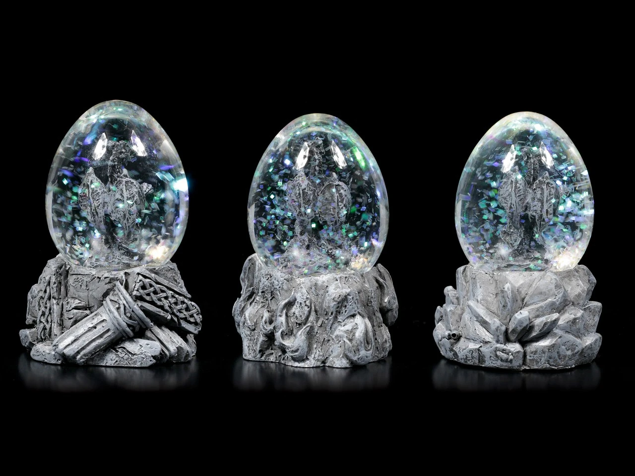 In den Eiern mit den Drachen befindet sich eine Flüssigkeit und Glitter für den Schneekugel-Effekt.