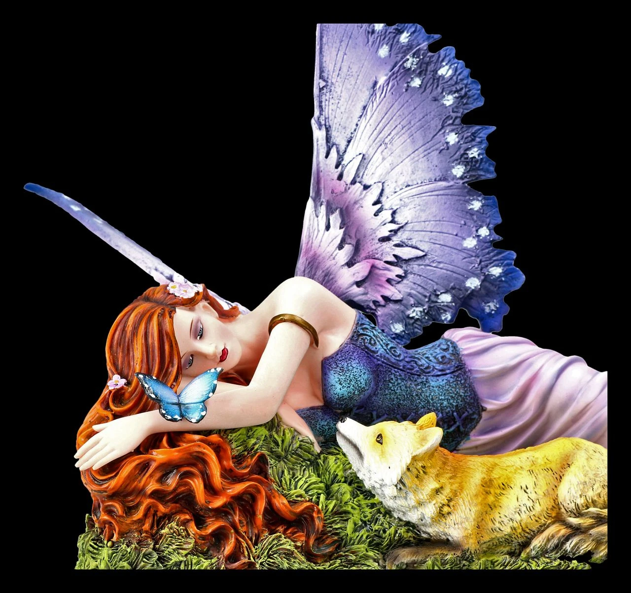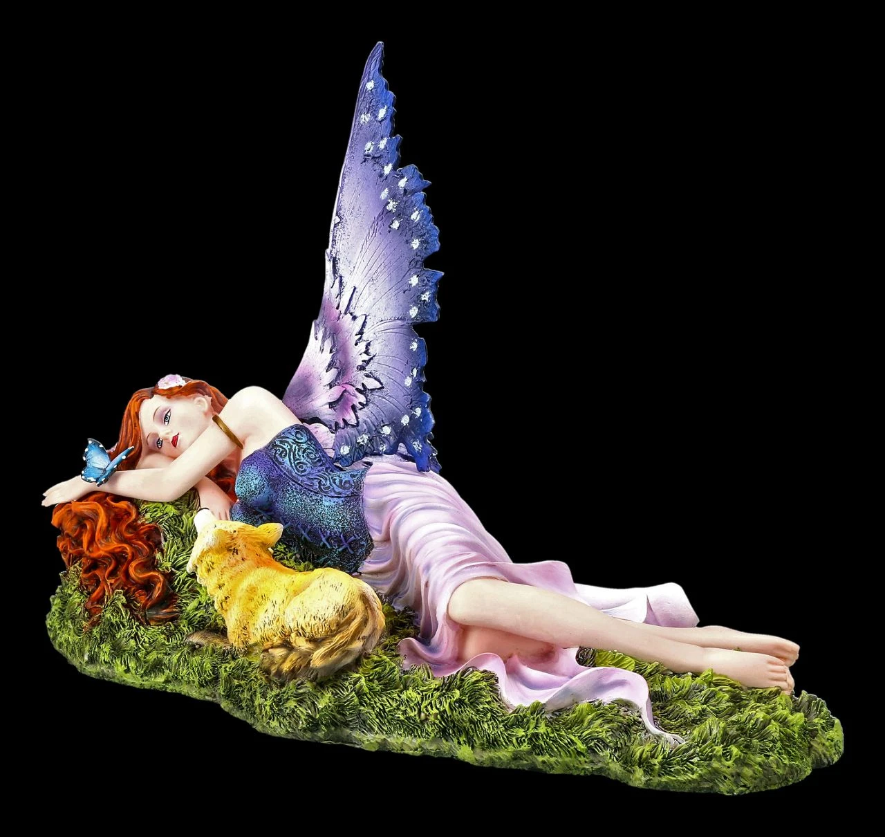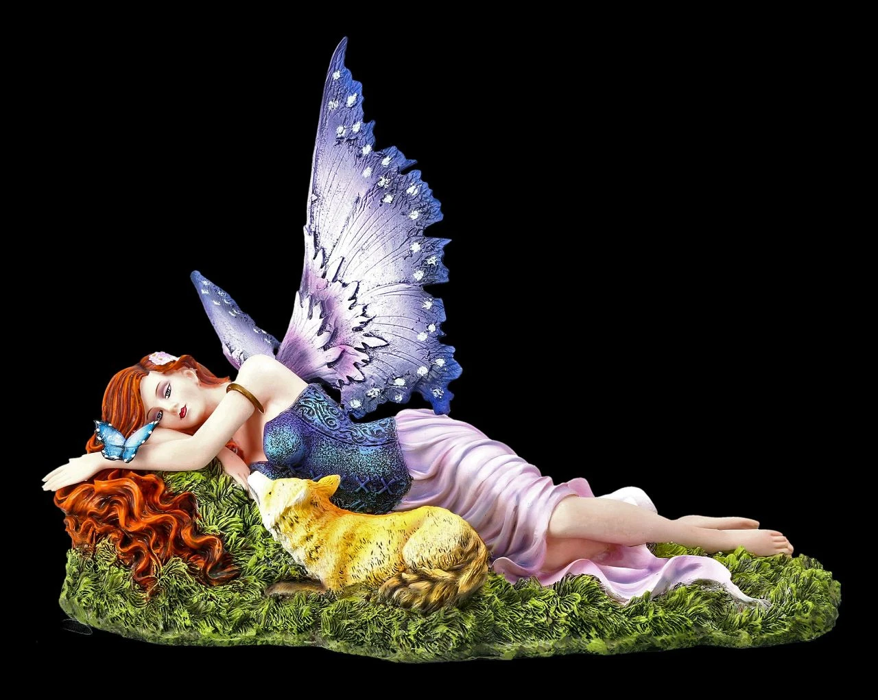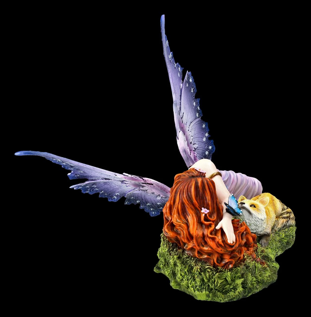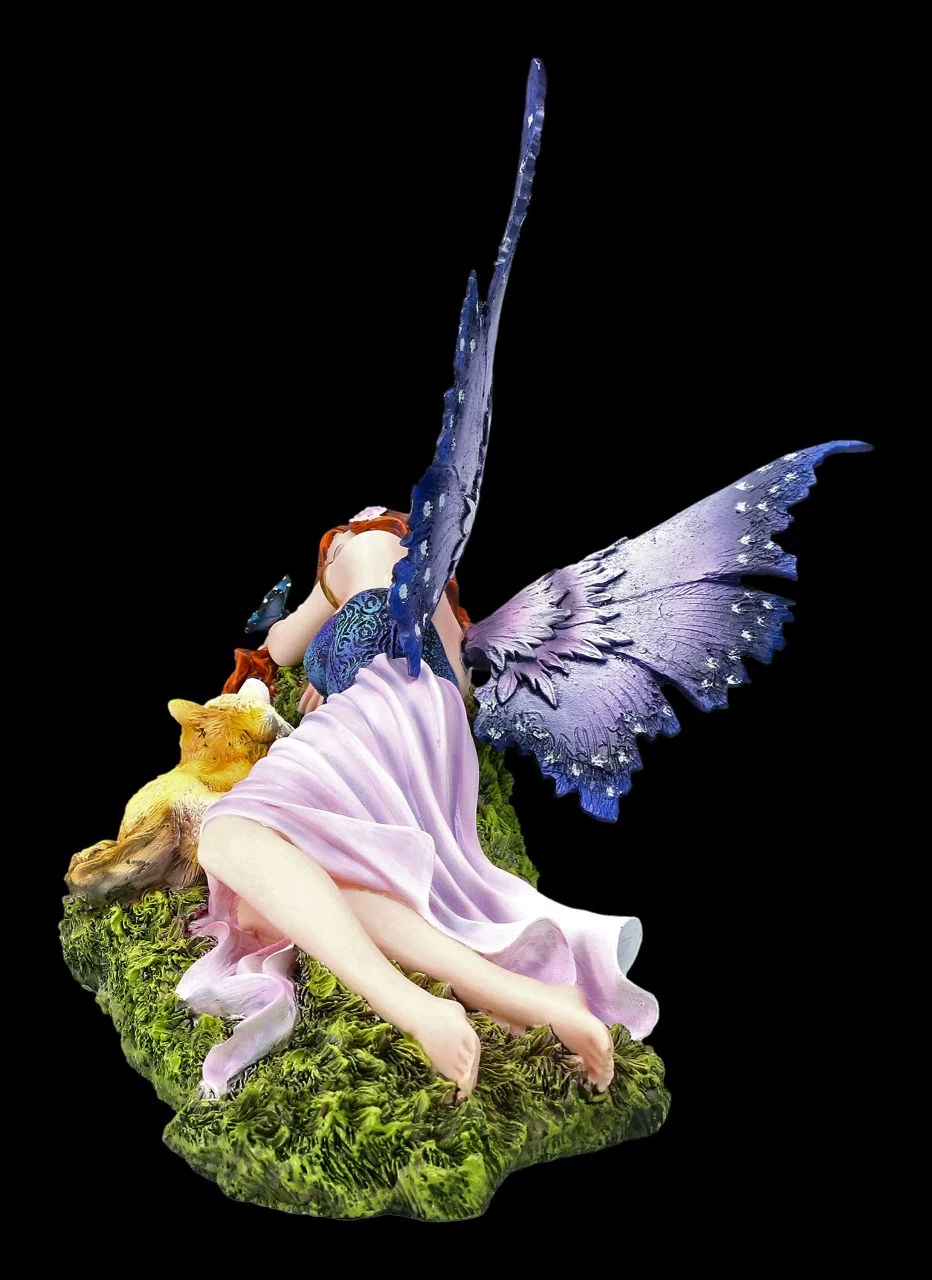 Im Figuren Shop! Bitte streicheln – mit einem bettelnden Blick schaut das kleine Füchslein zur wunderschönen Elfe hoch. Die schöne Elfe Foxy hat sich, ihre langen roten Haare weit ausgebreitet, eigentlich zum Träumen auf den Waldboden gelegt, wo sie nun aber von dem kleinen Füchslein entdeckt wurde. Die niedliche, 24 cm hohe, 33,5 cm breite und 22 cm tiefe Elfen-Figur Foxy mit dem kleinen Fuchs ist bis zu den kleinsten Details liebevoll aus Kunststein (Polyresin) gefertigt und fein von Hand bemalt. Die schönen und filigranen Flügel der Elfe sind zum Stecken. Für jeden, der die magische Welt der Elfen und die Natur liebt, ist die schöne Foxy mit dem Füchslein ein wunderbares Geschenk.