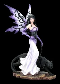 Anmutig und erhaben schreitet die Elfe durch das Elfenschloss. Sie führt ihren schwarzen Panther an der Leine. Die Elfe ist ein stilvoller Blickfang! Sie ist aus hochwertigem Kunststein gefertigt und detailreich handbemalt.