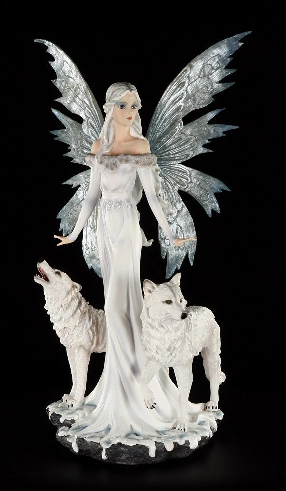 Elfen Figur – Niamh Die Eisprinzessin Mit Zwei Wölfen – Groß