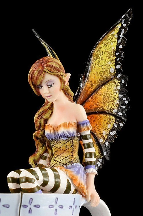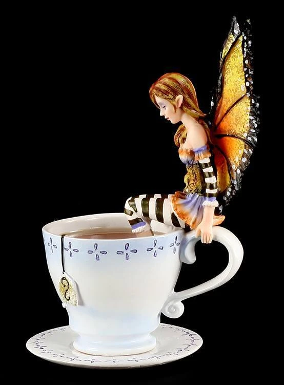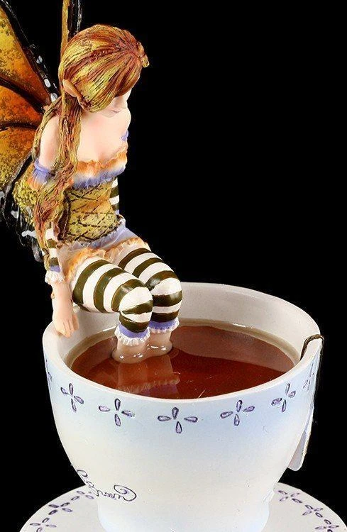 Die kleine Elfe wärmt ihre Füße in einer heißen Tasse Tee. Die kleine wurde von der Künstlerin Amy Brown geschaffen. Ein wunderbares Geschenk.