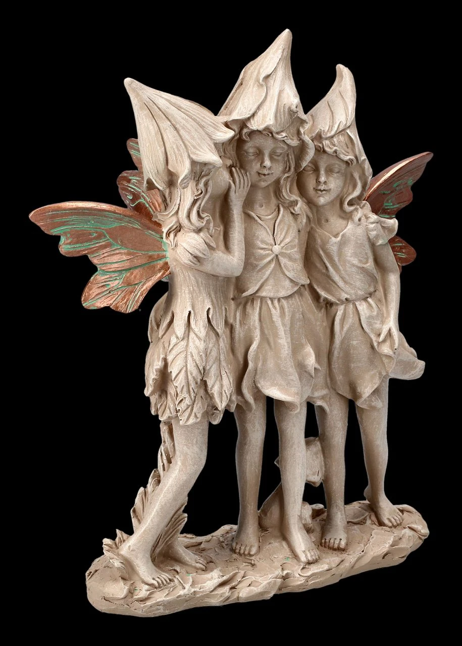 Wir sind die allerbesten Freundinnen und teilen jedes Geheimnis! Diese niedliche Elfenfigur mit den drei Fairy Friends mit ihren Blumenhüten ist ein wunderbares Geschenk für Ihre besten Freundinnen. Die putzige, 23 cm hohe, 20 cm breite und 11 cm tiefe Elfenfigur wurde liebevoll aus handbemaltem Kunststein (Polyresin) gefertigt. Ob Sie die Elfenfigur selbst aufstellen, oder Ihren besten Freundinnen schenken – sie wird überall große Freude bereiten.