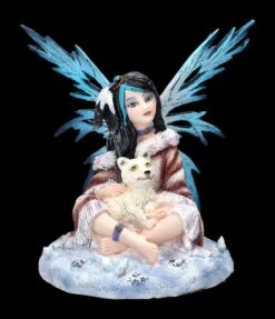 Eisig bläst der Wind über das ewige Eis der winterlichen Nordsee. Doch mittendrin sitzt Polara auf einer Eisscholle und streichelt das weiße Fell eines kleinen Babywolfes, der sein Rudel verloren hat. Sie wird sich nun um ihn kümmern, erzählt sie ihm und der kleine Wolf schnurrt zufrieden wie ein Kätzchen. Bis zu den filigranen Flügeln, die zum Stecken sind, und dem kleinen Wolf ist die niedliche 12 cm hohe, 9,5 cm breite und 10 cm tiefe Elfe Polara detailreich aus Kunststein (Polyresin) gefertigt und in den eisblauen Farben des tiefsten Winters liebevoll von Hand bemalt. Sie freut sich auf einen schönen Platz bei Ihnen, ist aber auch ein wunderbares Geschenk für Ihre Elfen- und Feen-Freunde.