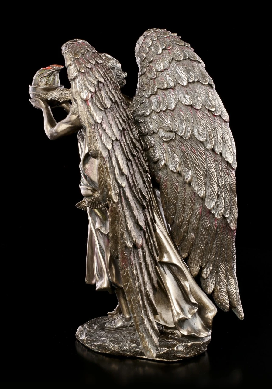 Aus der Divinity Collection stammt diese bronzierte und colorierte Erzengel Figur. Sie stellt Chamuel dar – „Er, der Gott sieht“. Chamuel ist der Gottesbote, der Hüter der Innigkeit und Herzenswärme. Als Engel der Nächstenliebe nimmt er einen hohen Rang in der Engelhierarchie ein.