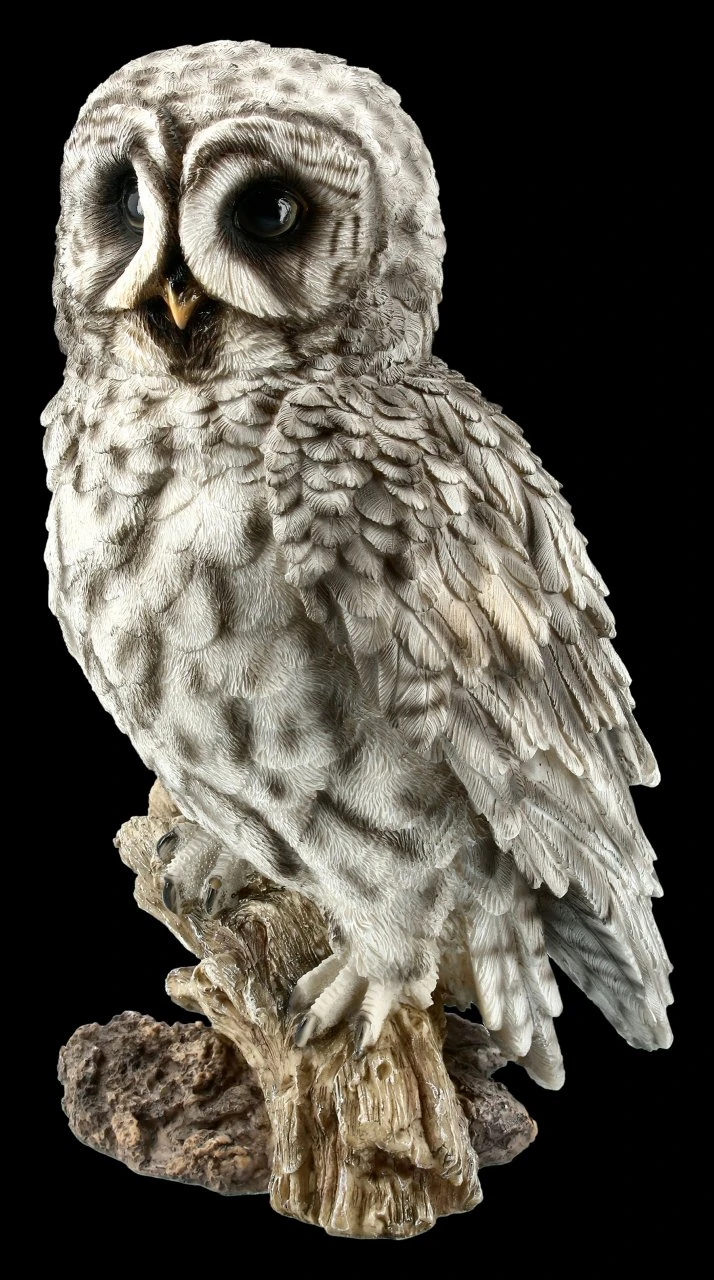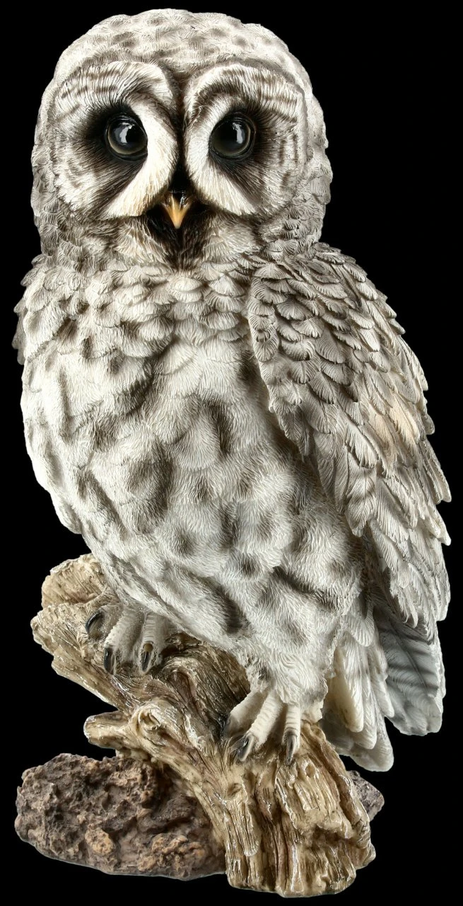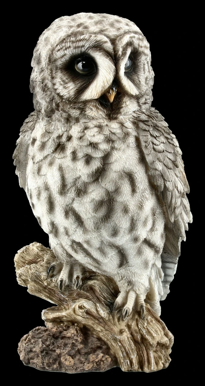 Eine wunderschöne Dekoration, die mit Sicherheit jeden Eulen Fan begeistern wird, ist dieser fantastisch natürlich aussehende, auf einem Ast sitzende Bartkauz. Man hat richtig den Eindruck, als würde er mit vorsichtigen Blicken aufmerksam jede Bewegung genauestens beobachten. Der fantastische Bartkauz mit der Höhe von 30 cm, der Breite von 15,5 cm und der Tiefe von 17,5 cm ist beeindruckend detailreich aus Kunststein (Polyresin) gefertigt und mit viel Liebe zum Detail von Hand bemalt. Ob auf der Fensterbank oder dem Sideboard, er sollte auf jeden Fall da Platz finden, wo er von jedem Besucher bewundert werden kann.