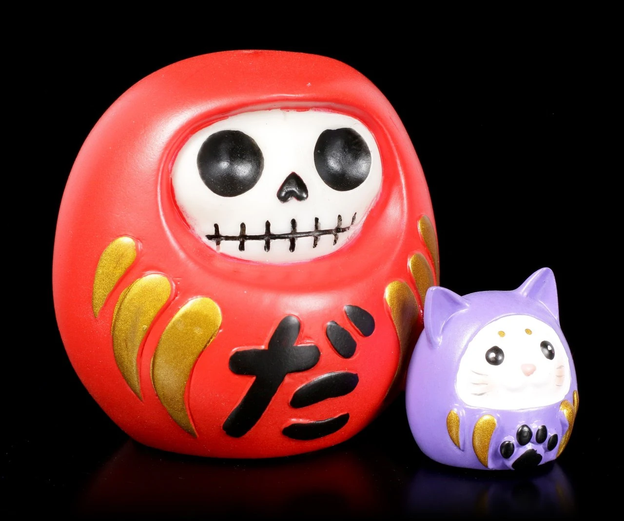Daruma zählen zu den beliebtesten Glücksbringern in Japan. Sie stehen zudem für die Kraft und den Mut, auch in schwierigen Situationen wieder aufzustehen. Der kleine Furrybone hat sich als Daruma verkleidet und als Spielgefährte hat er seine Glückskatze dabei. Die handbemalte Figur aus Kunststein (Polyresin) ist ein wunderbarer Glücksbringer und ein niedliches Geschenk für einen lieben Menschen.