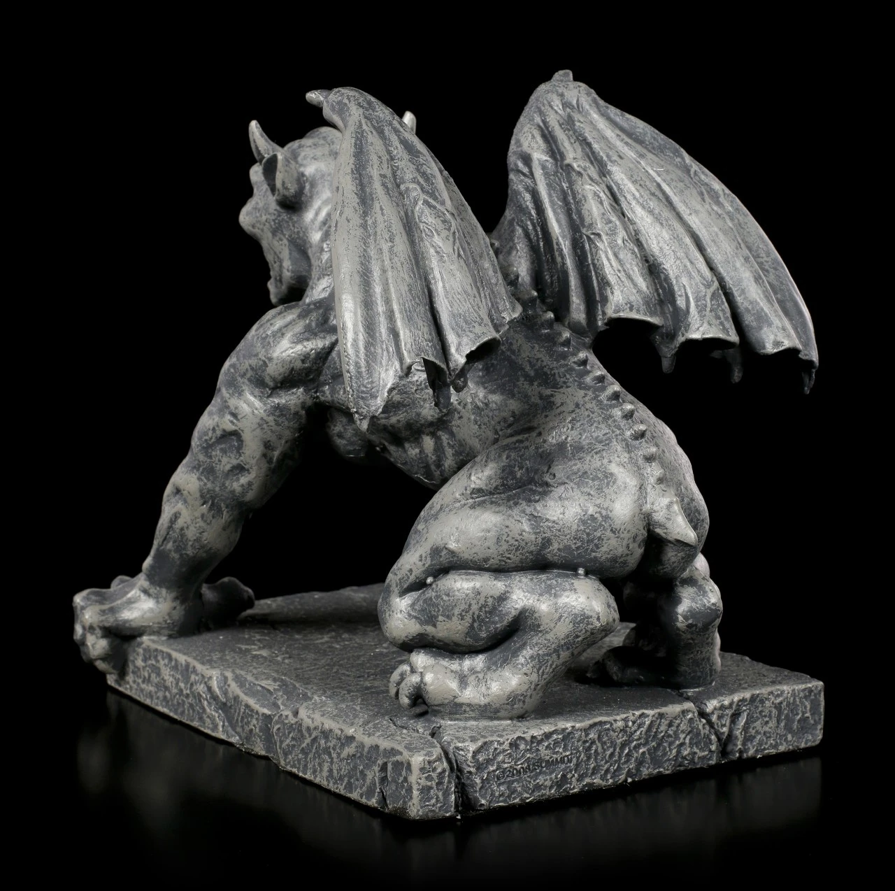 Der furchterregende geflügelter Wächter in Form einer mittelalterlichen Statue lauert auf allen Vieren mit weit ausgebreiteten Schwingen. Ursprünglich wurden Gargoyles entworfen, um böse Geister abzuschrecken. Noch heute sind sie daher eine große Bereicherung für jedes Zuhause. Die handbemalte Figur Conall aus Kunststein (Polyresin) ist das ideale Geschenk zum Einzug.