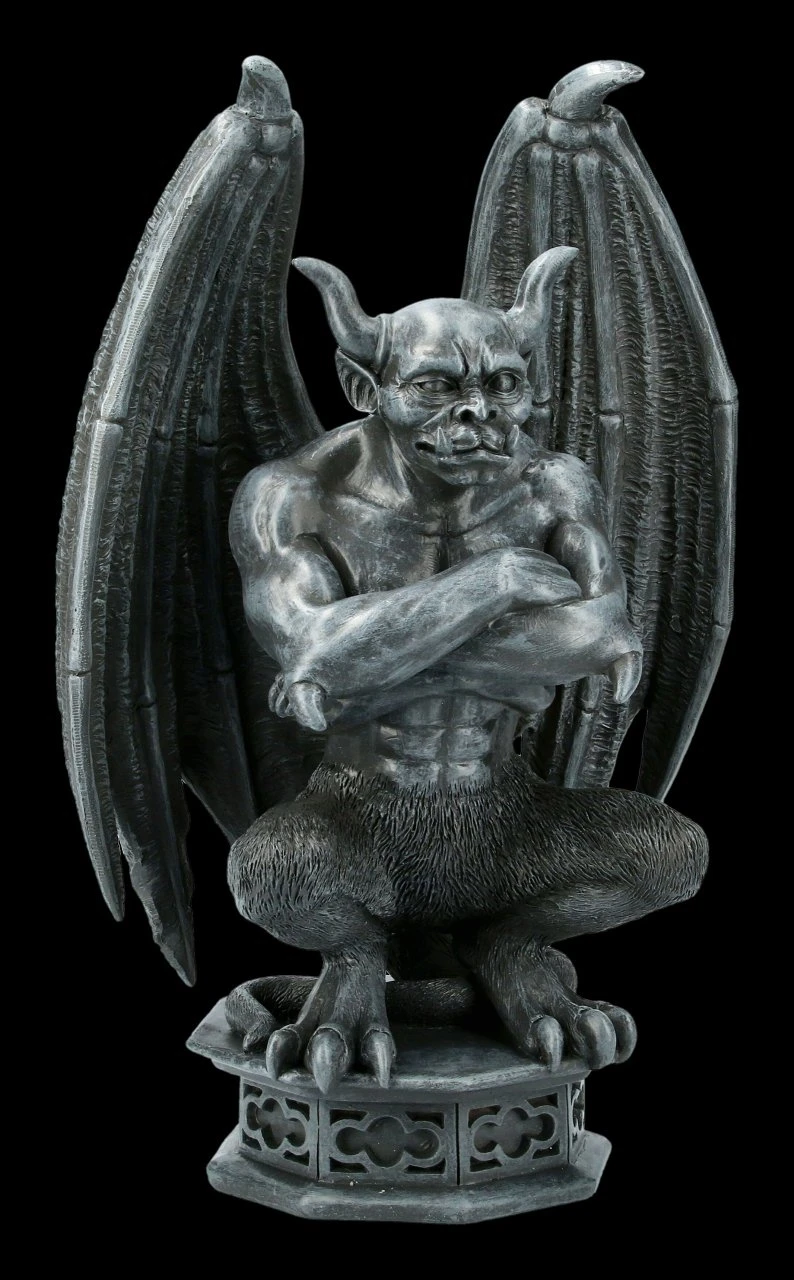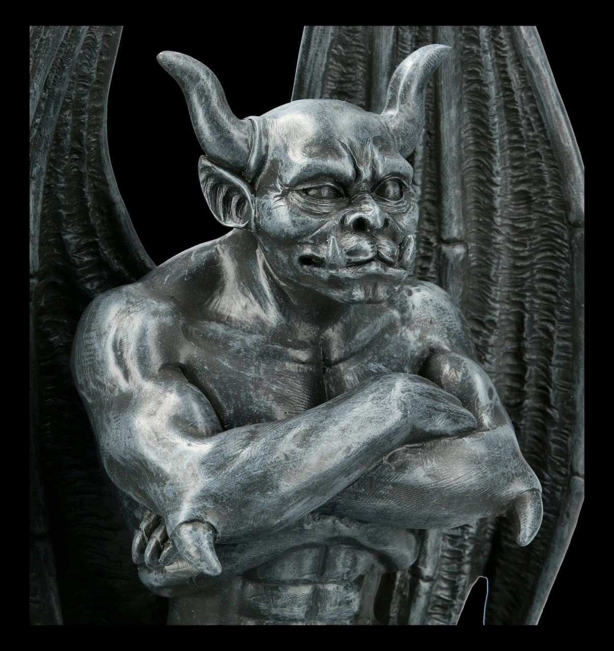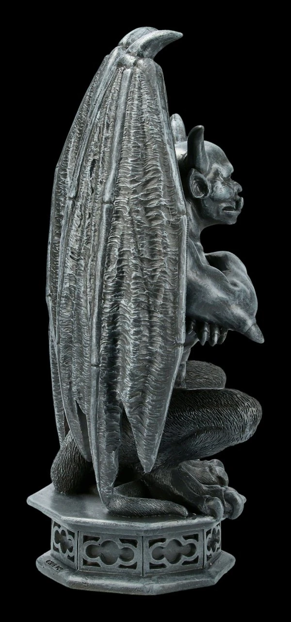 Durch ihr dämonisches Aussehen halten Gargoyles den bösen Mächten einen Spiegel vor und bewegen sie dadurch, in die Unterwelt zurück zu kehren. Damit schützen Gargoyles die Menschen und ihr Heim. Diese detailreiche, starke Gargoyle Figur aus handbemaltem Kunststein (Polyresin) ist mit der Höhe von 31,5 cm, der Breite von 19,5 cm und der Tiefe von 13 cm ein beeindruckender Beschützer Ihres Heimes. Stellen Sie diesen starken Gargoyle am besten in der Nähe Ihres Eingangs auf.