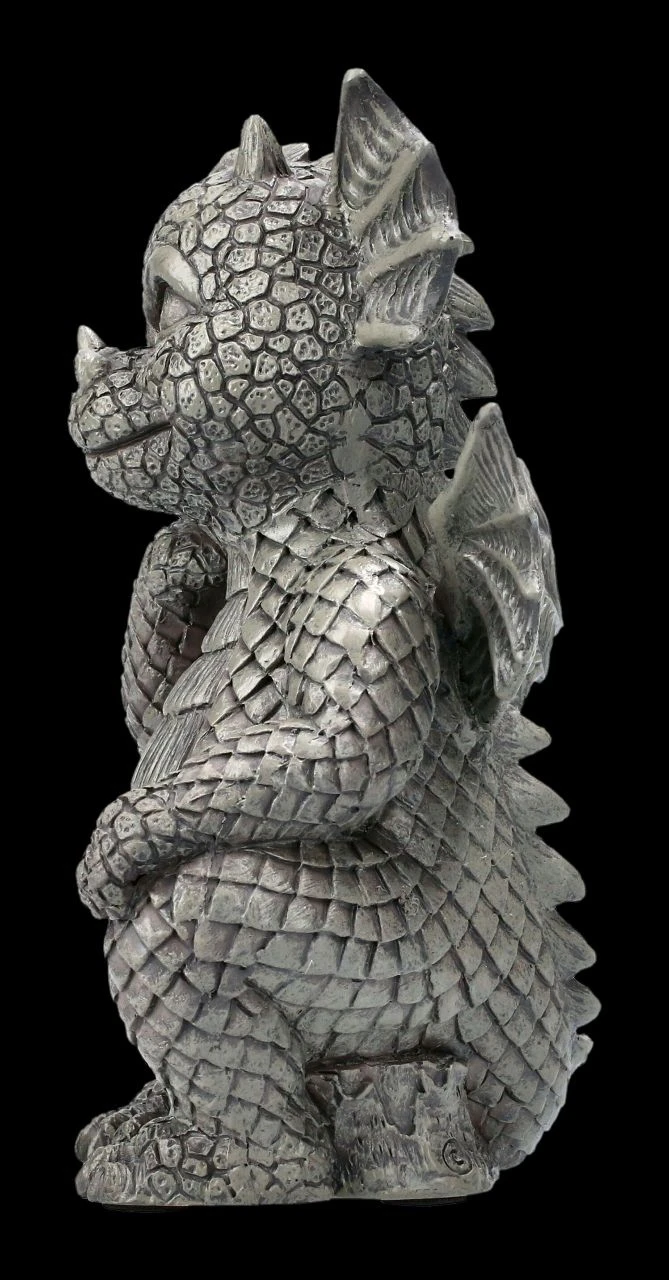 Ganz so ernst scheinen die Gedanken des lustigen kleinen Drachens wohl nicht zu sein. Zumindest lässt sein blinzelndes Auge und das verschmitzte Lächeln das vermuten. Der lustige Drache in der Denker-Pose ist detailreich aus Kunststein (Polyresin) gefertigt und handbemalt. Mit seiner Höhe von 13 cm, der Breite von 8 cm und der Tiefe von 6 cm wird der kleine Drache sogar im Blumenkasten sofort alle Blicke auf sich ziehen. Für alle Drachen- und Gartenfreunde ist der kleine Drache sicher ein lustiges Geschenk.
