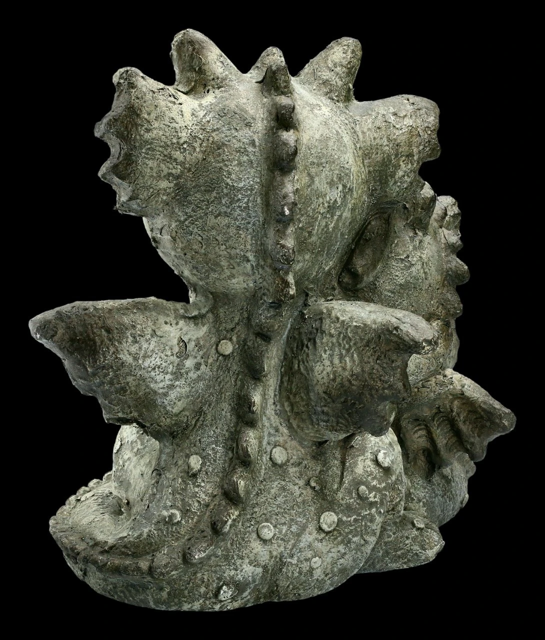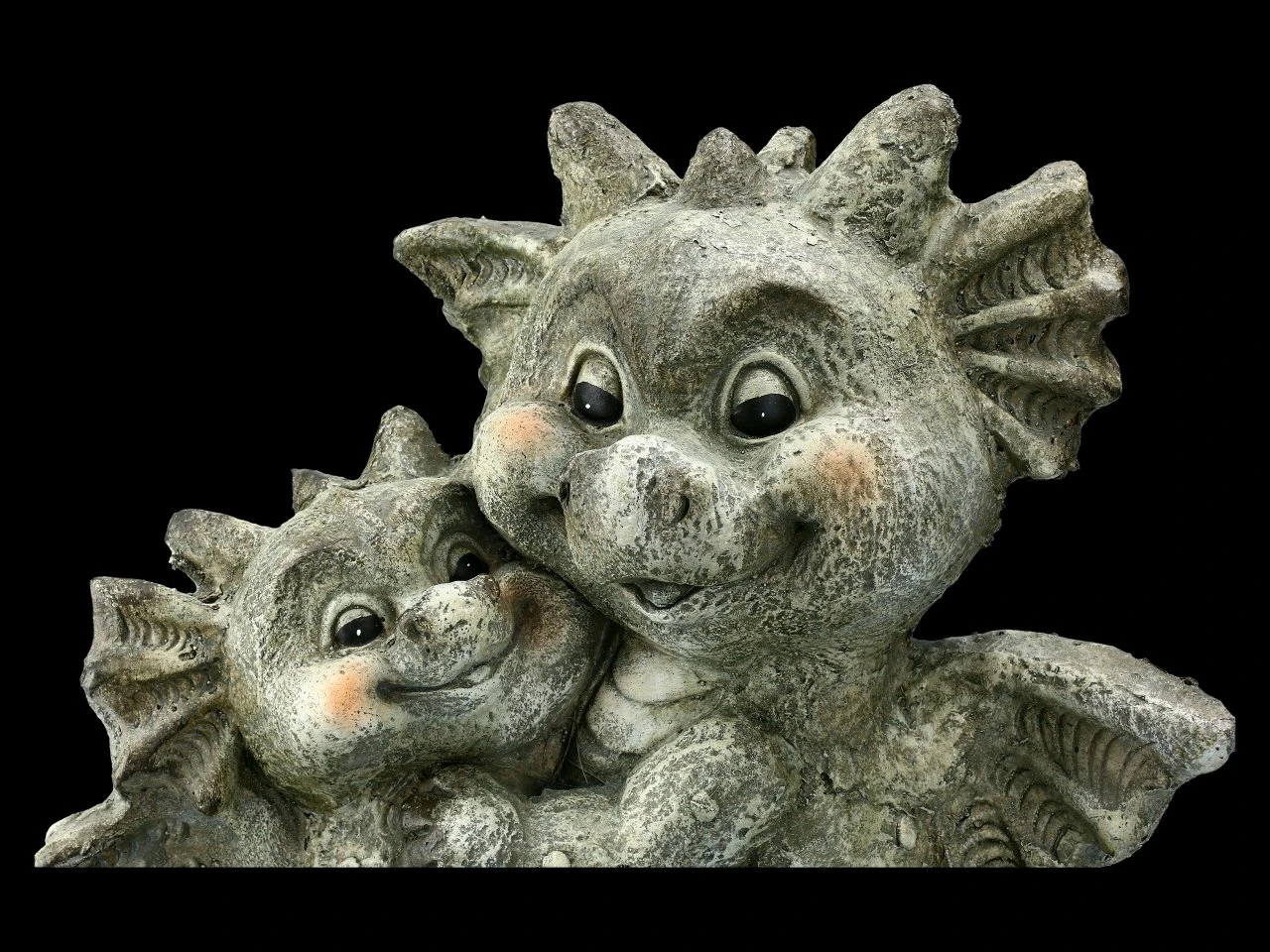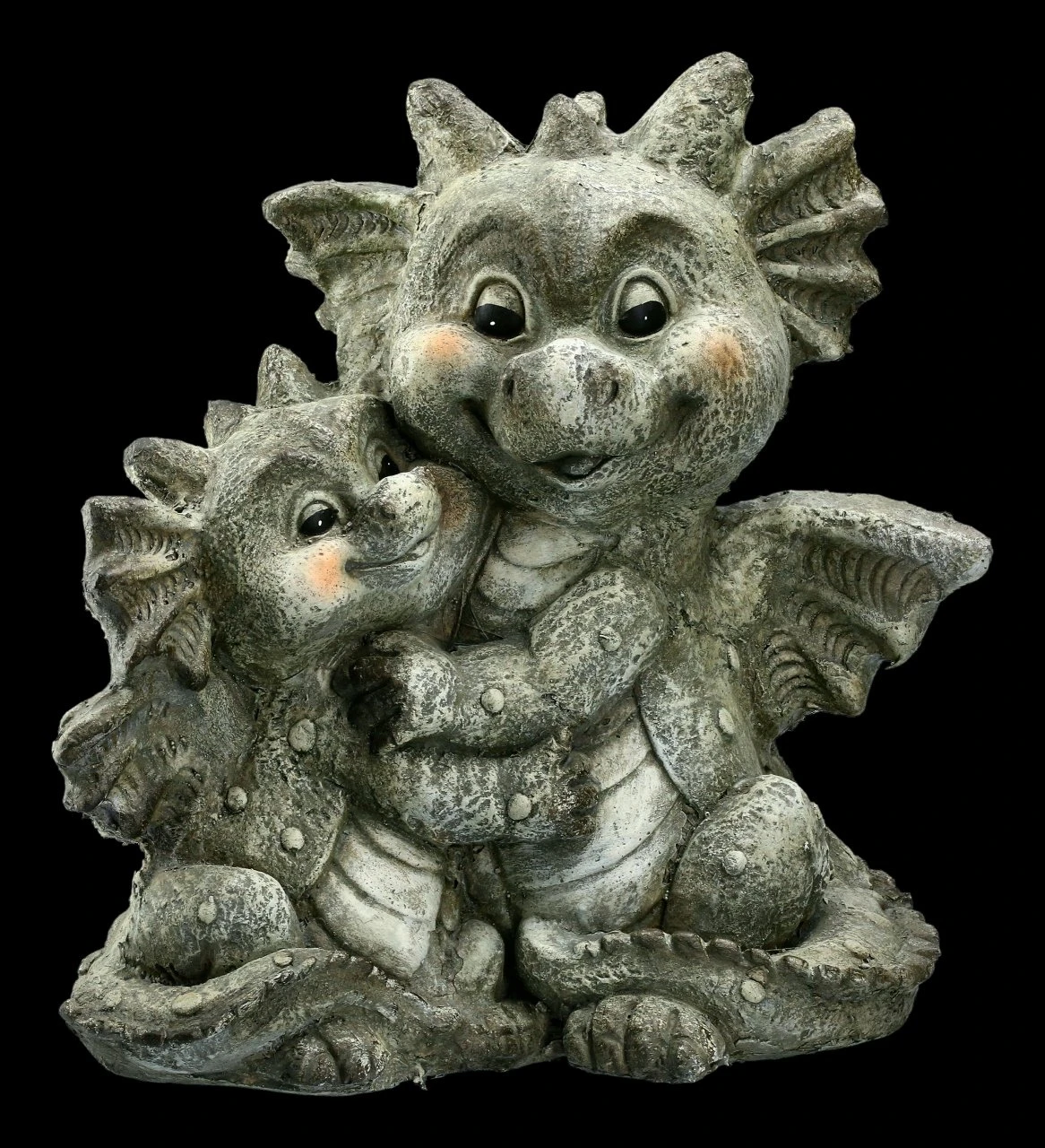 Wenn das nicht süß ist – glücklich lächelnd sitzen diese beiden Drachen in Ihrem Garten und schmiegen sich zärtlich aneinander. Die niedliche Gartendeko aus handbemaltem Kunststein (Polyresin) mit dem Drachen-Pärchen ist 35 cm hoch, 34 cm breit und 25 cm tief. Die beiden freuen sich auf einen schönen Platz in Ihrem Garten, sie sind aber natürlich auch ein besonders liebevolles Geschenk. Bitte beachten Sie unseren Hinweis zur Wetterbeständigkeit!