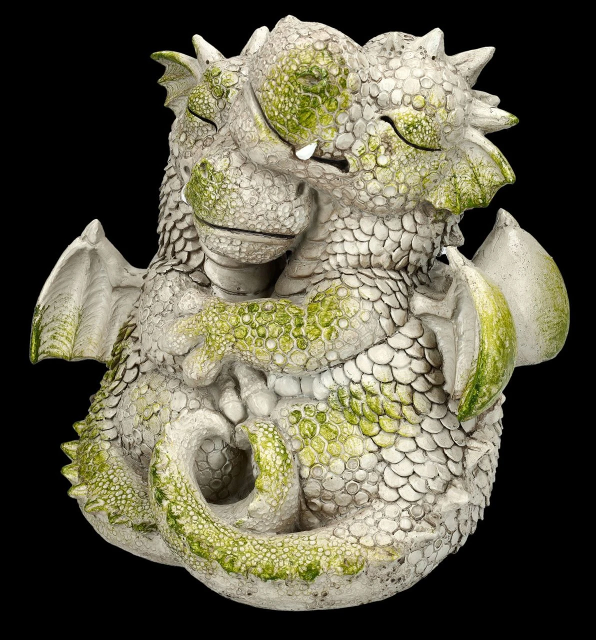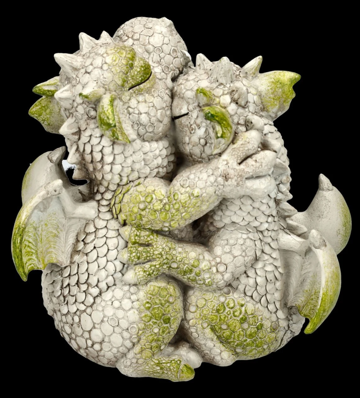 „Ich hab dich ja sooo lieb“ – eng umschlungen sitzen die beiden Drachen schon so lange da, dass es aussieht, als hätten sie bereits Moos angesetzt. Das romantische Drachenpaar aus der Serie Magical Garden ist 23 cm hoch, 22,5 cm breit und 16 cm tief und doch absolut niedlich. Ob im Garten, auf dem Balkon oder der Terrasse – dieses liebevoll aus handbemaltem Kunststein (Polyresin) gefertigte Drachenpaar wird jeden begeistern. Das lustige Drachen Paar ist ein humorvolles Geschenk fĂĽr alle verliebten DrachenfreundeÂ