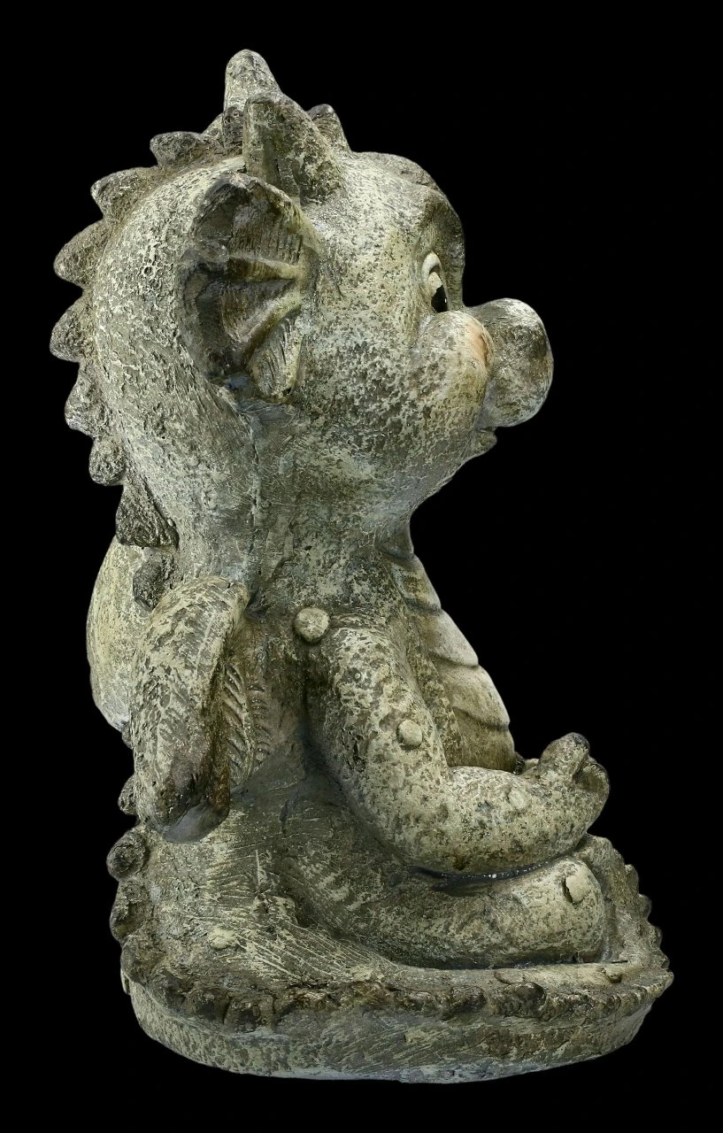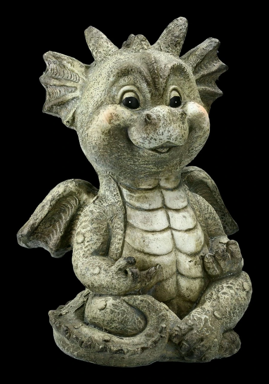 Entspannt lächelnd sitzt der lustige Drache aus handbemaltem Kunststein (Polyresin) in Ihrem Garten und meditiert. Ob im Zen Garten oder im Eingangsbereich – der niedliche Drache ist überall ein Hingucker. Er ist 34,5 cm hoch, 25,5 cm breit und 23 cm tief und zeigt mit seiner Anwesenheit, dass in dem Haus, vor dem er meditiert, jeder entspannt willkommen geheißen wird. Bitte beachten Sie unseren Hinweis zur Wetterbeständigkeit!