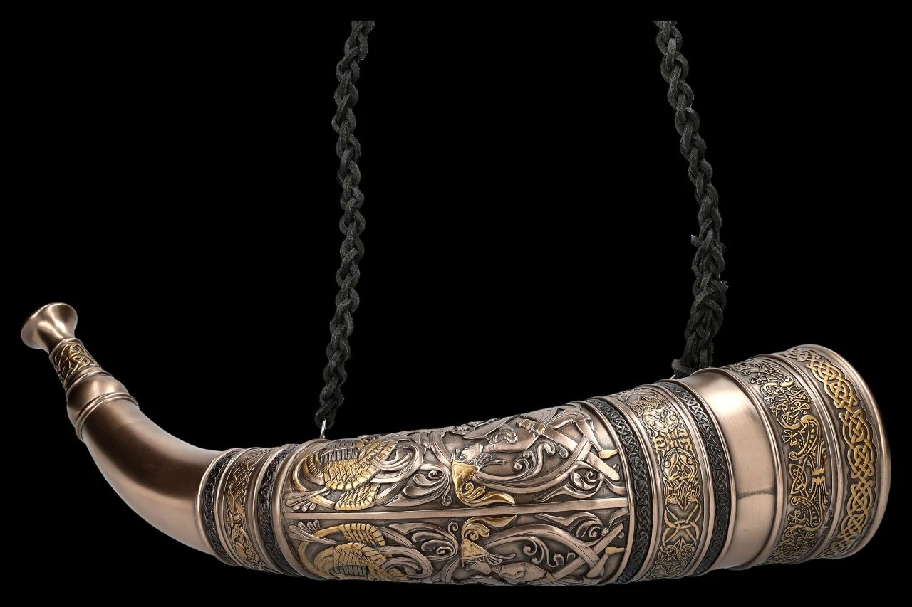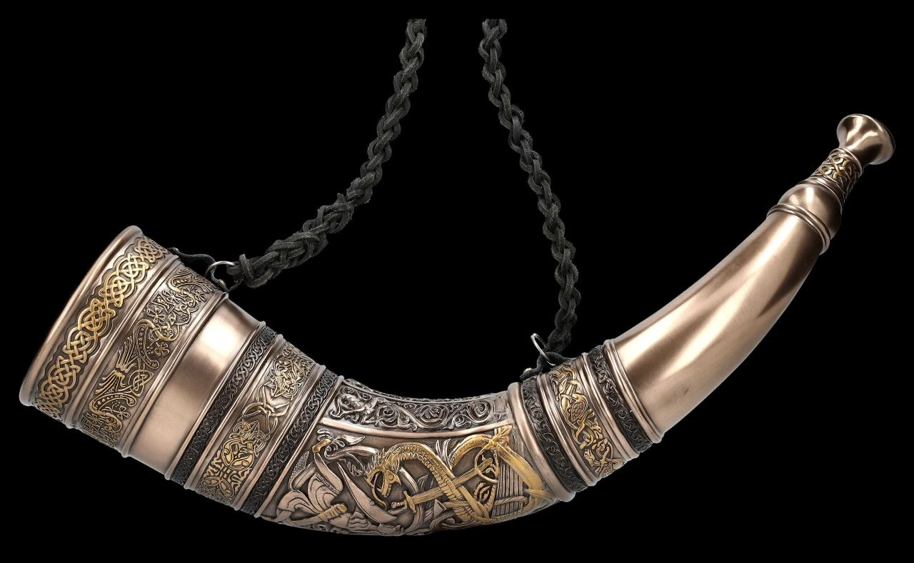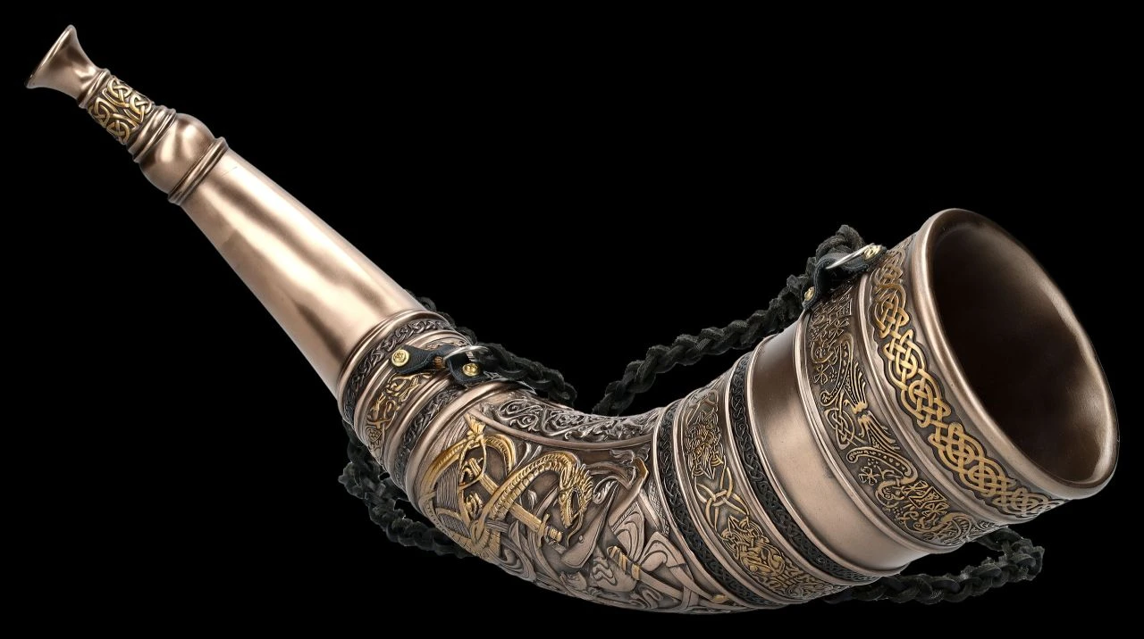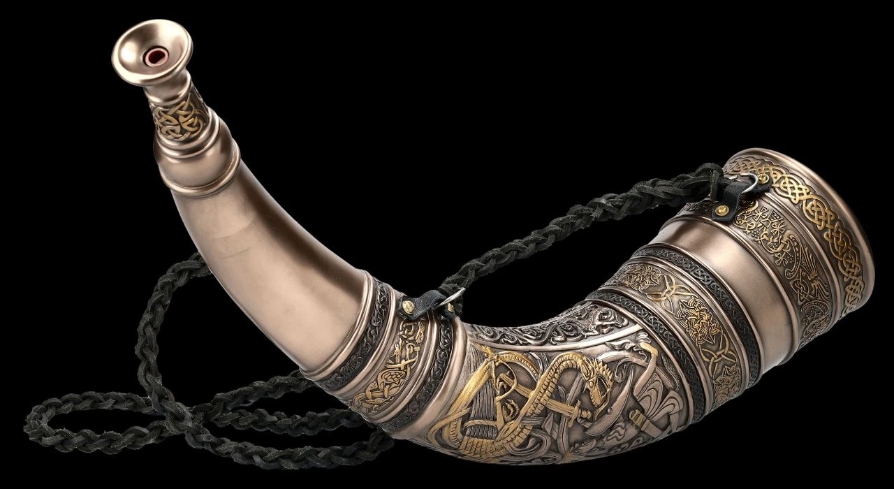 Das Germanische Signalhorn war das Rufhorn der Wikinger mit dem sie sich bei der Seefahrt und im Kampf verständigen konnten. In der germanischen Mythogie wurde das Signalhorn aber auch dazu verwendet, die Götter Asgards zu rufen und es wurde auch als Gjallarhorn des Gottes Heimdall bezeichnet.