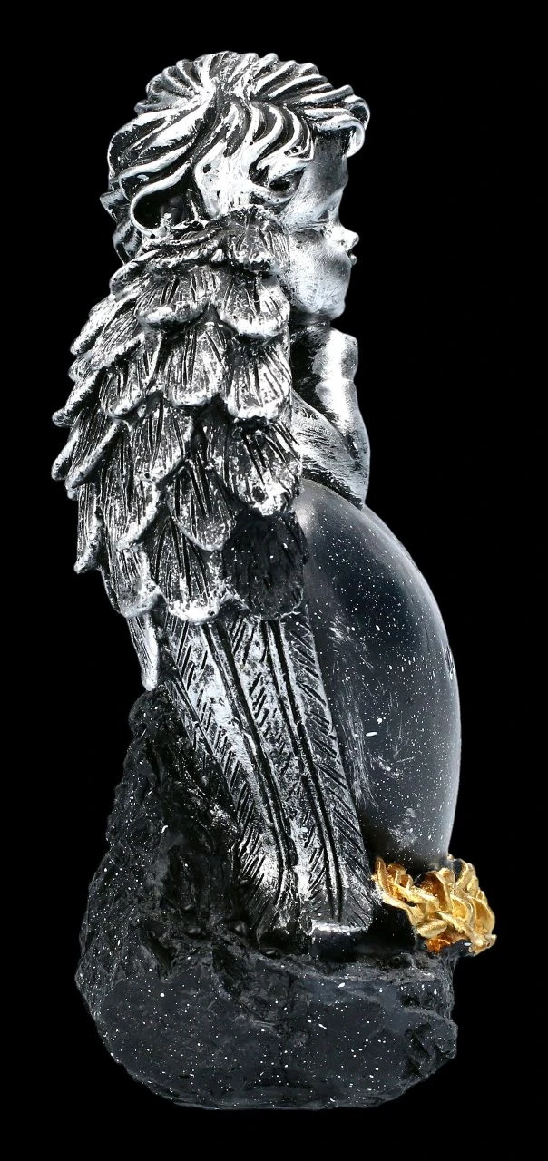‚Wir vermissen Dich‘, so lautet die Inschrift auf dem wie aus einem schwarzen Granit gearbeiteten Herz, hinter dem nachdenklich der süße, barocke Engel steht. Die fünf goldarbenen Rosen am Fuß des Herzens gibt diesem Grabengel ein edles Aussehen. Der Grabengel ist sehr detailreich aus liebevoll handbemaltem Kunststein (Polyresin) gefertigt. Er ist 17 cm hoch, 13 cm breit und 6,5 cm tief und sehr detailreich gestaltet.