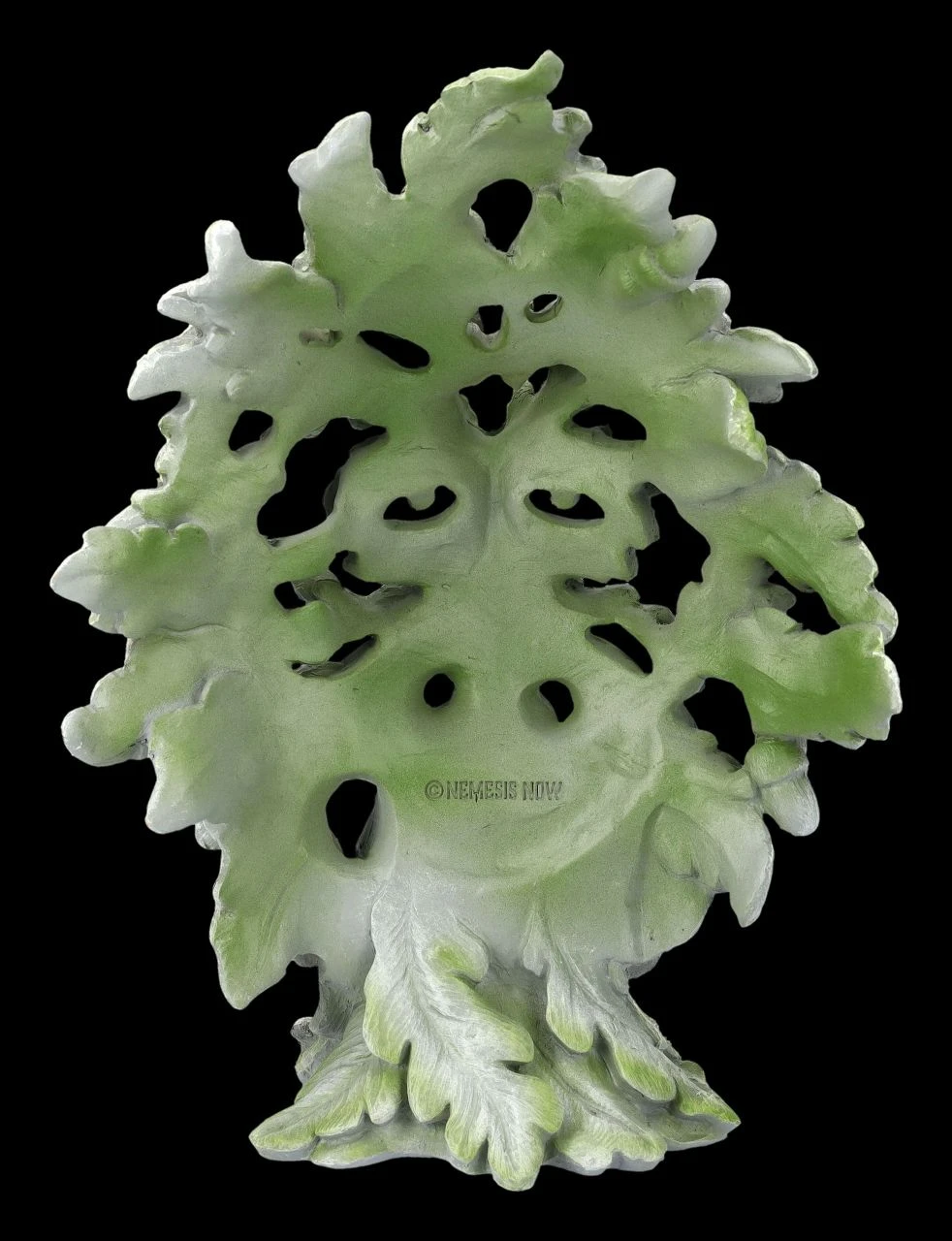 Dieser mystische Baumgeist von Andrew Bill wirkt wie eine bereits mit Grünalgen überzogene uralte Darstellung eines Greenman. Beinahe so findet man sie auf manchen Kirchen, die den Naturgeist aus heidnischen Zeiten als Schmuck übernommen hatten. Der Bildhauer und Künstler Andrew Bill aus Staffordshire liebt die Kunst der Fantasie und das ist auch bei seiner Greenman-Skulptur ‚Forest Ancient‘ zu sehen. Erst auf den zweiten Blick entdeckt man zwischen den Blätttern die klugen Augen und den Mund des Baumgeistes. Die 29 cm hohe, 21,5 cm breite und 13 cm tiefe Skulptur mit den vielen Details wurde aus hochwertigem Kunststein (Polyresin) gefertigt und von Hand bemalt. Diese Beumgeist-Statue von Andrew Bill wird in jedem Ambiente zum sofortigen Blickfang.