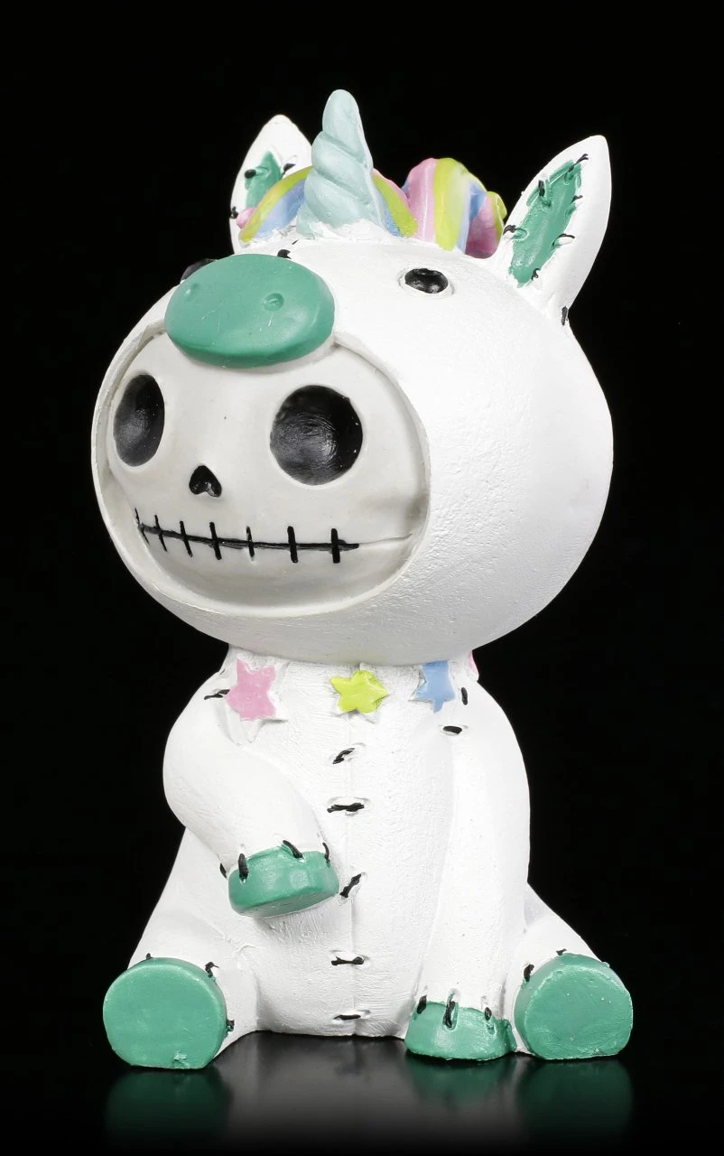 White Unie, der kleine Furrybone, hat sich heute als weißes Regenbogen Einhorn verkleidet. Finden Sie das Kostüm des kleinen Skelettes genauso niedlich wie wir? Die große handbemalte Kunststein (Polyresin) Figur aus der Summit Collection sollte in keiner Sammlung fehlen.