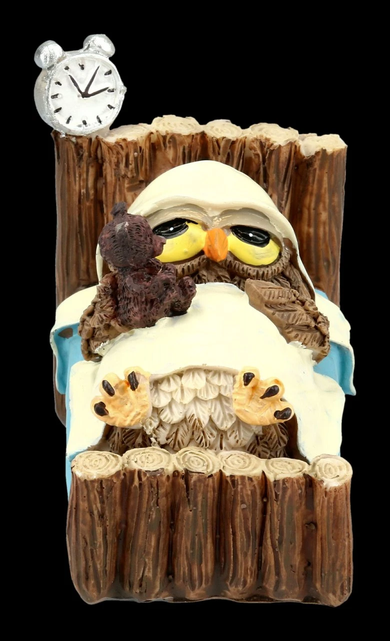 Die niedliche Eule ist nach einem anstrengenden Tag sehr müde und freut sich auf einen ruhigen Schlaf.