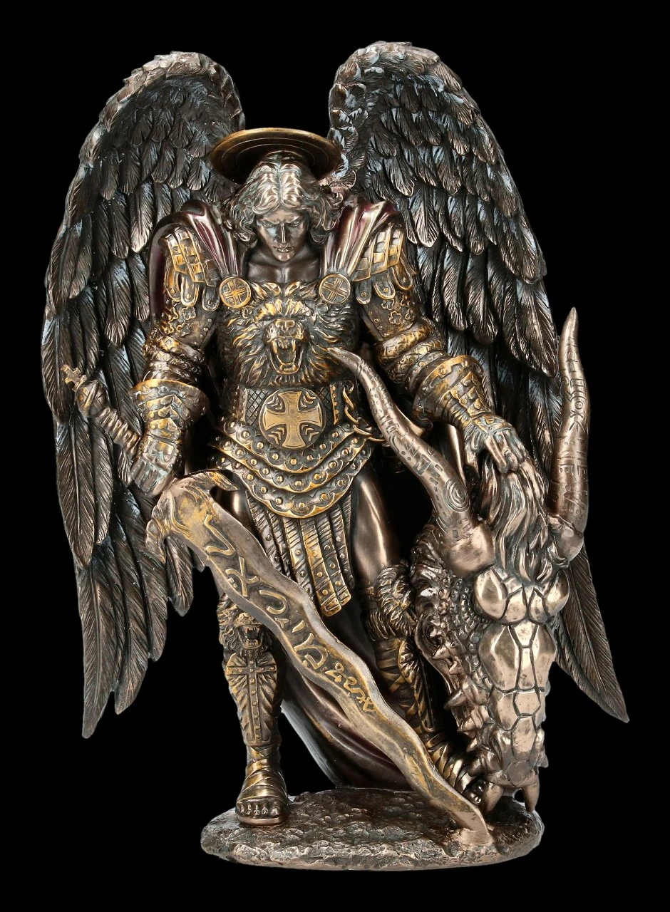Der Erzengel Michael gilt im Christentum sowohl als Bezwinger des Teufels in der Gestalt eines Drachens als auch als Anführer der himmlischen Heerscharen. Der Name „Michael“ hat seinen Ursprung im Hebräischen und bedeutet „Wer ist wie Gott?“. Hierzulande gilt der Engel Michael auch als Schutzpatron der Deutschen.