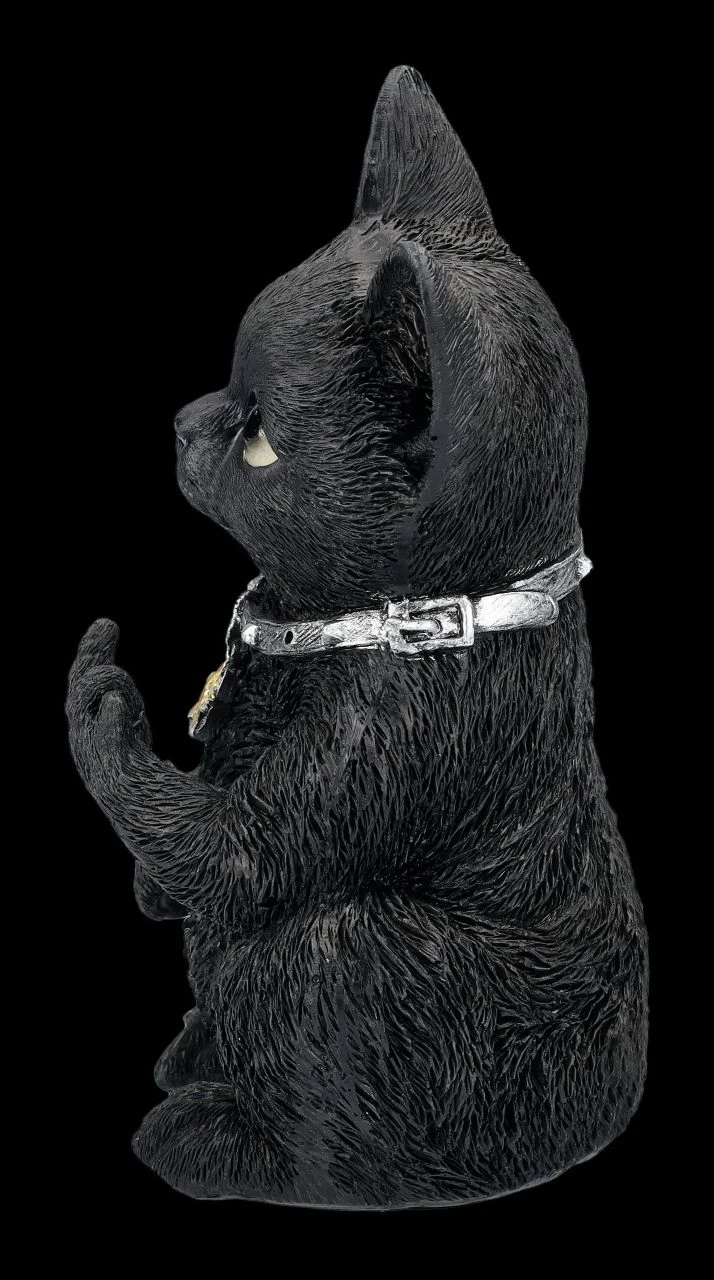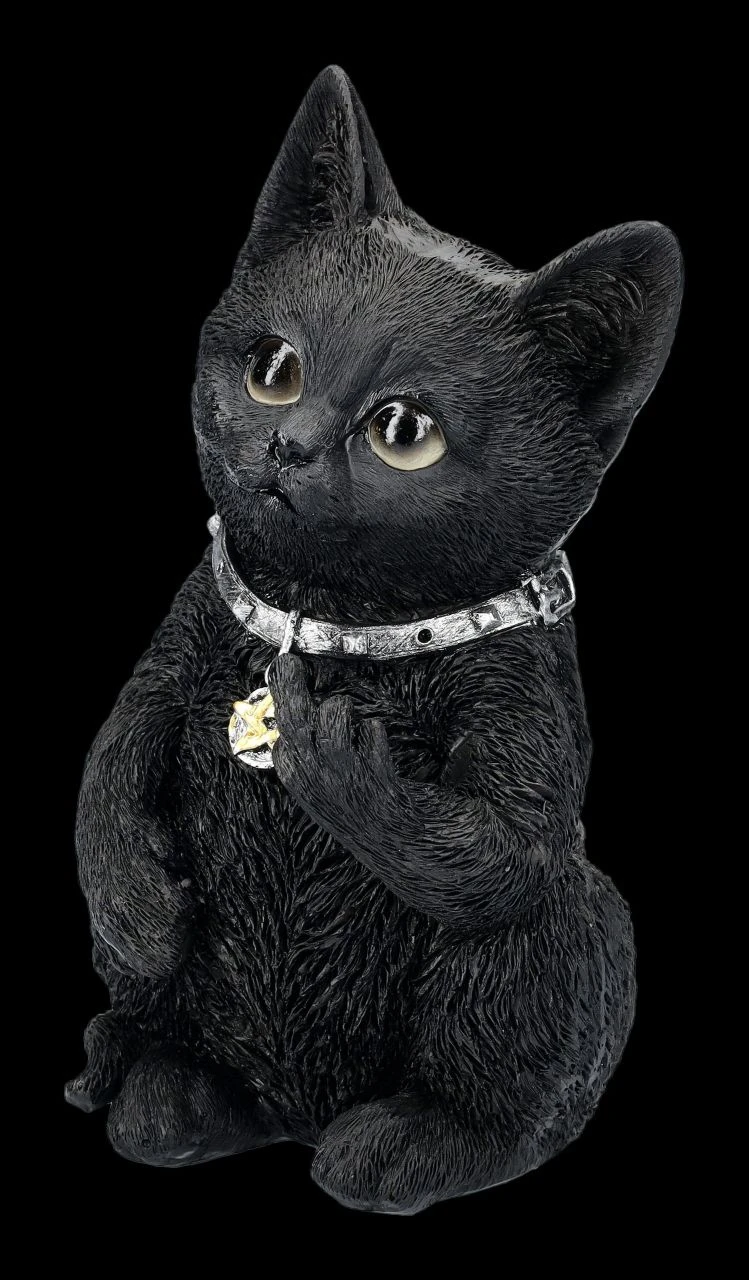 Mit treuherzigen Blick zeigt die schwarze Katze den Mittelfinger und damit, was sie von ihrem Gegenüber hält. Ob man die witzige Katzenfigur aber auf seinen Schreibtisch in einem Großraumbüro stellen sollte??? Die lustige Katzenfigur Cattitude wurde sorgfältig aus handbemaltem Kunststein (Polyresin) gefertigt. Sie ist 17 cm hoch, 10 cm breit und 9,5 cm tief und wird mit Sicherheit jedem sofort auffallen, der sie auf dem Schreibtisch oder im Regal entdeckt. Für Menschen mit Humor ist Cattitude auch ein witziges Geschenk.