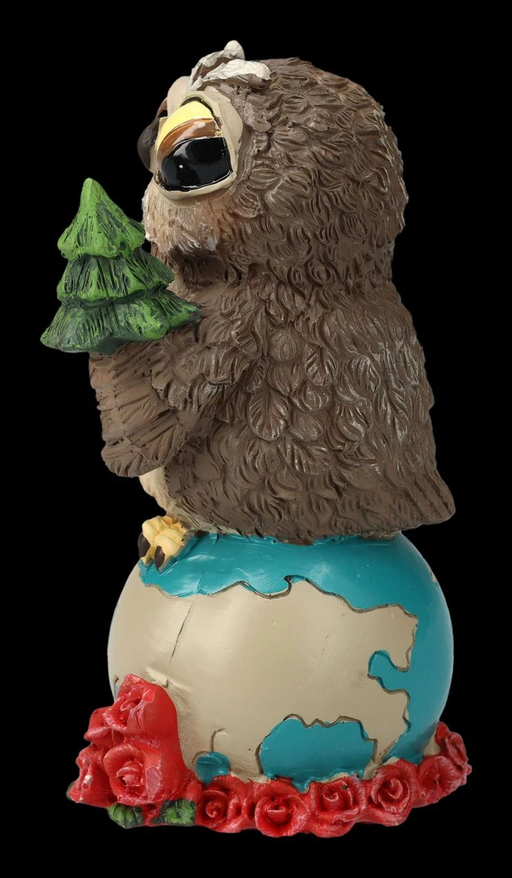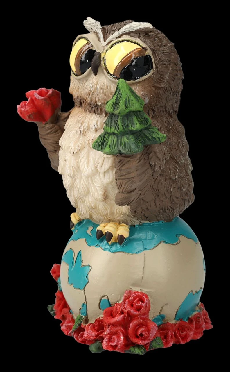 Die Erde liegt in einem Bett aus Rosenblüten und darauf steht hoch aufgerichtet eine Eule mit einer Rosenblüte in der einen und einem Tannenbaum in der anderen Hand. Eulen gelten ja als sehr weise und vielleicht sollte uns diese lustige Eulen-Figur, die das Element Erde darstellt, einfach nur zeigen, wie wichtig es ist, die schönen Dinge der Natur zu schützen. Die 11 cm hohe, 7 cm breite und 5,5 cm tiefe Eulen-Figur aus handbemaltem Kunststein (Polyresin) ist für alle Eulen-Sammler, die vielleicht auch das Element Erde in ihrem Horoskop haben, ein tolles Geschenk.