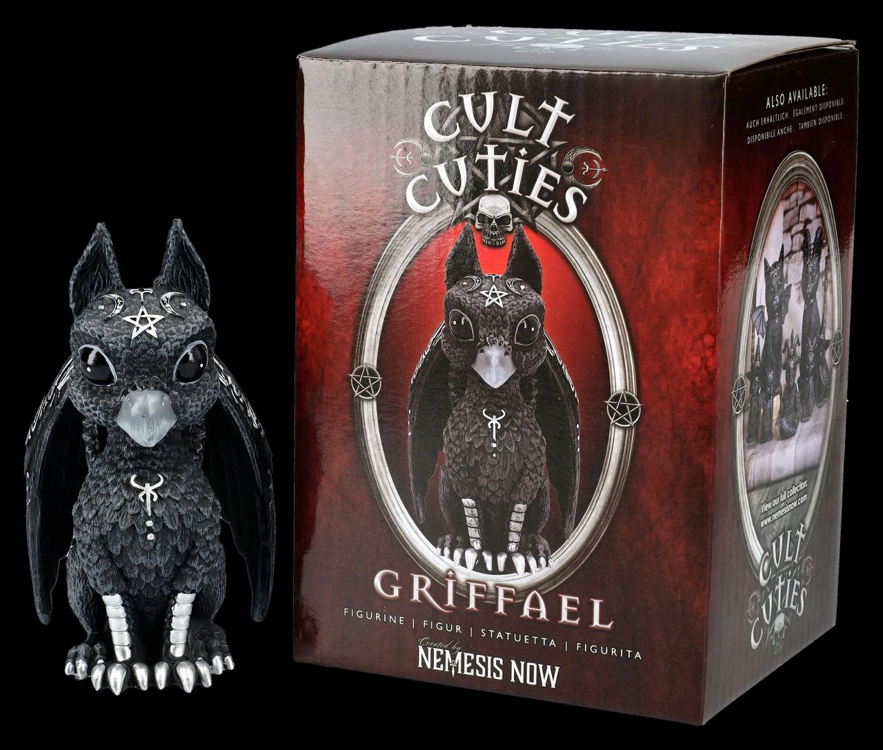 Das kann doch nicht sein, dass ausgerechnet Griffael noch in der Sammlung der kultigen Cult Cuties fehlt? Diesen Augen des Greifs Griffael mit den Symbolen der Dreifachen Göttin und dem Pentagramm auf der Stirn kann doch niemand widerstehen. Die 11 cm hohe, 6 cm breit und 7 cm tiefe Greif-Figur aus der Serie der Cult Cuties von Nemesis Now wurde aus liebevoll handbemaltem Kunststein (Polyresin) gefertigt. Griffael ist ein wunderbares Geschenk für alle Fans und kommt mit einem Geschenkkarton. Weitere Cult Cuties finden Freunde natürlich in unserem Shop.