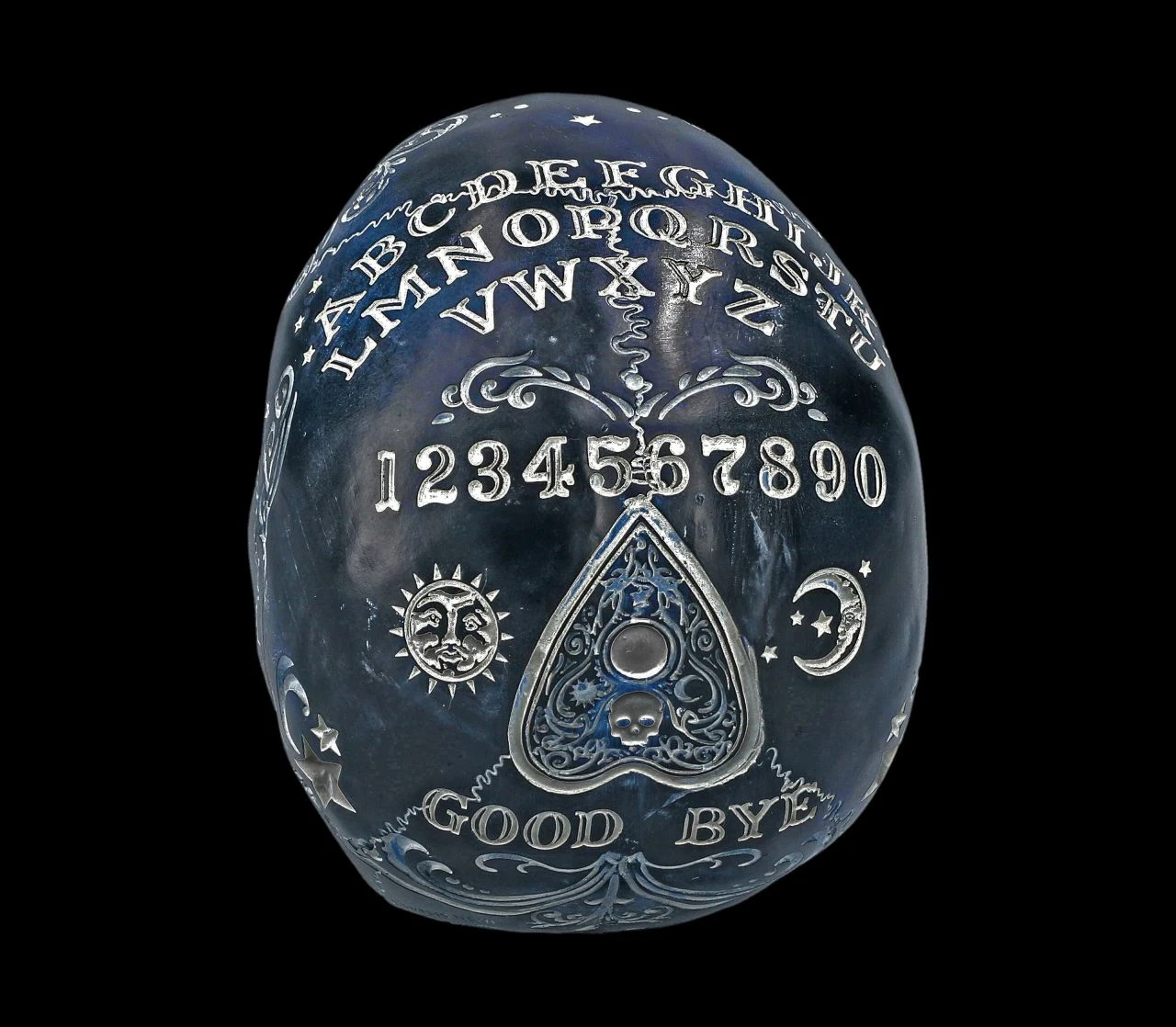 Schwarzer Totenschädel im mystischen Ouija-Design