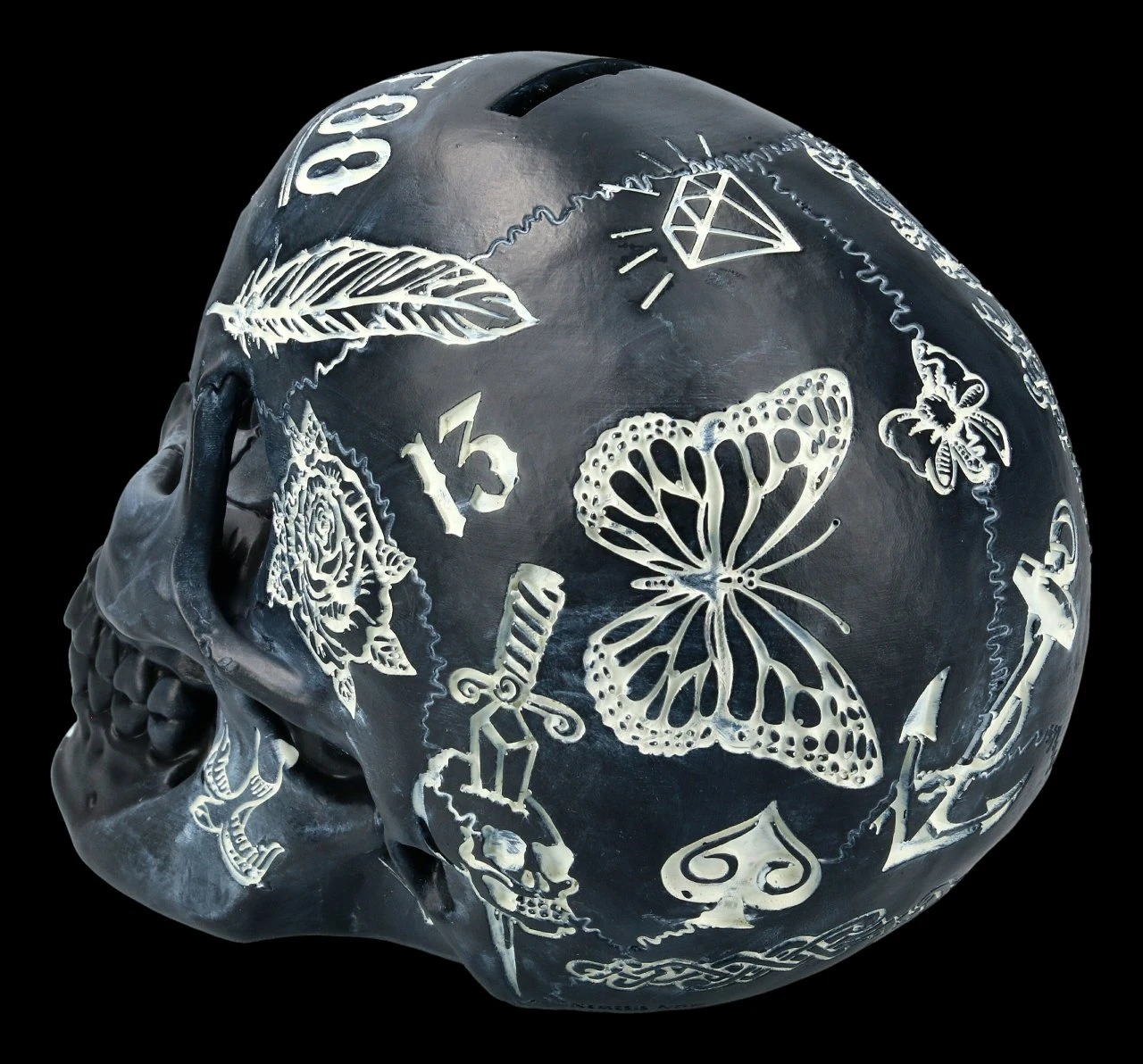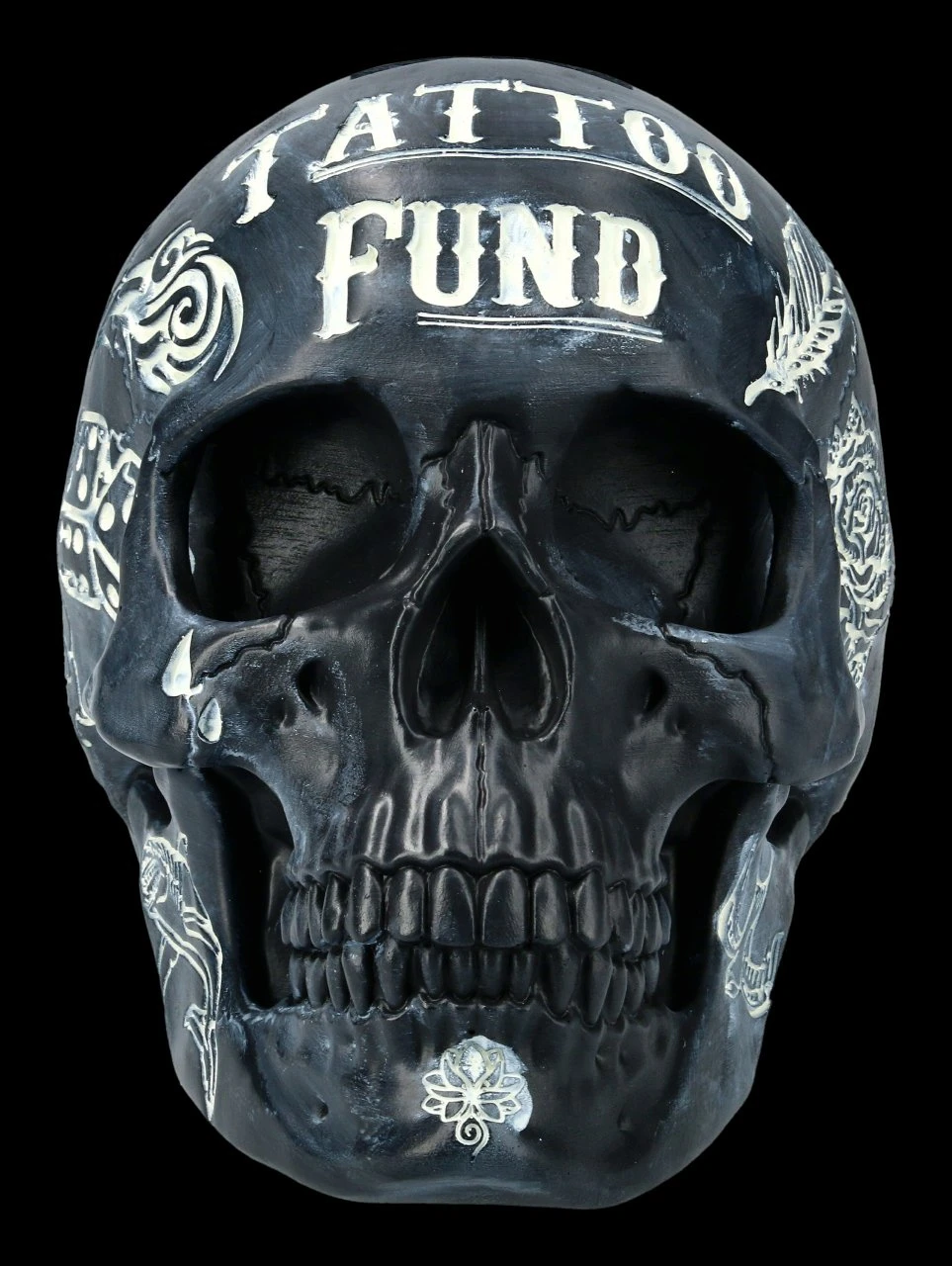 Detailliert aus Kunststein (Polyresin) gefertigt und handbemalt, ist die stylische Spardose mit dem schwarzen Totenkopf perfekt dazu geeignet, auf sein nächstes Tattoo zu sparen. Mit einer Höhe von 15 cm, der Breite von 12 cm und der Tiefe von 19 cm bietet sie genug Platz für alles, was man selber spart oder als Zuschuss sammelt. Die Tattoo Spardose mit dem schwarzen Totenkopf ist auch ein cooles Geschenk und wird inklusive einer bedruckten Geschenkbox verschickt.