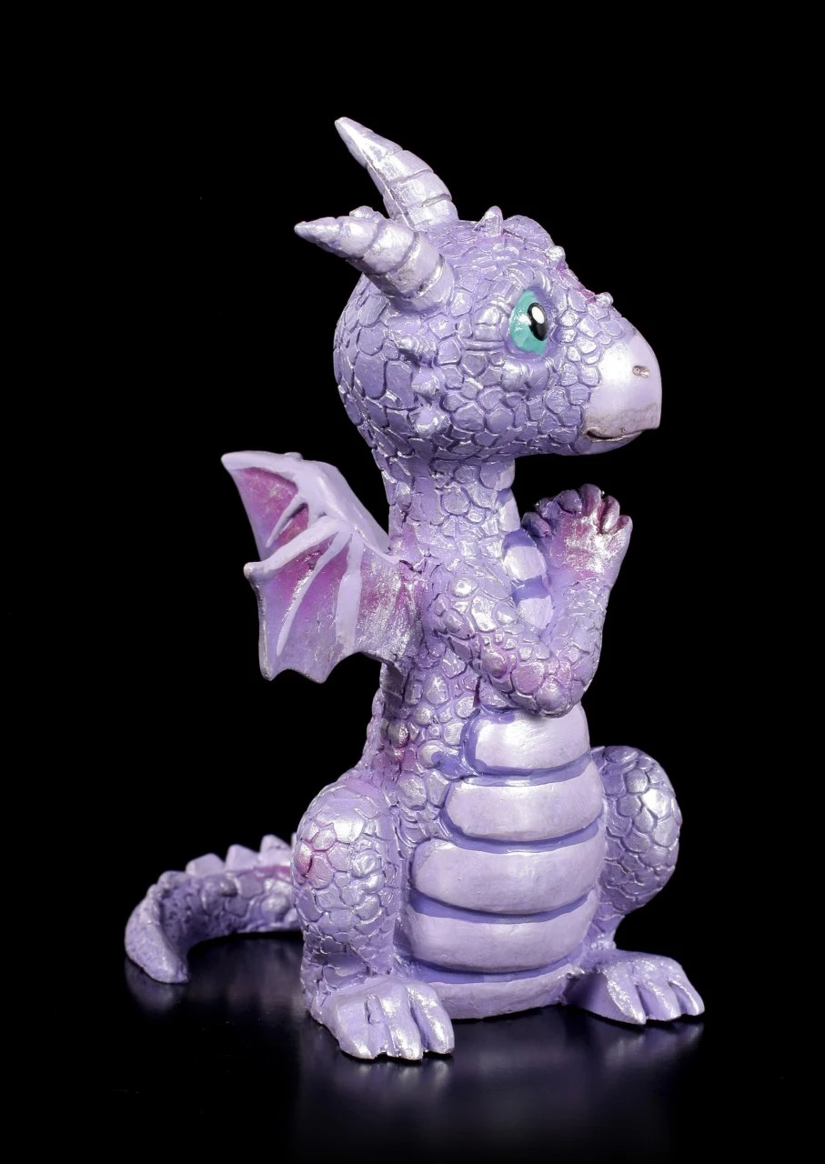 Klein Freddie schaut jeden am Küchentisch mit großen Kulleraugen an, um doch vieleicht einen kleinen Happen abzubekommen. Betteln kann der kleine lila Drache wie ein Weltmeister! Die süße Drachen Figur aus Kunststein (Polyresin) wurde liebevoll handbemalt.