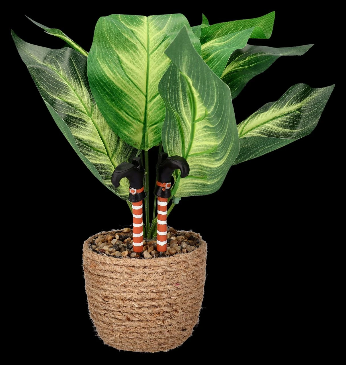 Wer bitte wurde in diesem Blumentopf vergraben, wird sich sicher jeder fragen, der die aus der Erde ragenden Hexenbeine entdeckt. Die Hexenbeine aus handbemaltem Kunststein (Polyresin) sind nicht nur an Halloween eine lustige Deko für jeden Blumentopf. Mit dem Metall-Stecker sind die 8 cm hohen Hexenbeine in den geringelten Strümpfen je 11 cm hoch. Sie sind je 3,5 cm breit und je 1 cm tief und ein wirklich witziges Geschenk. Der Blumentopf aus unsrer Deko ist allerdings nicht in der Lieferung dabei!