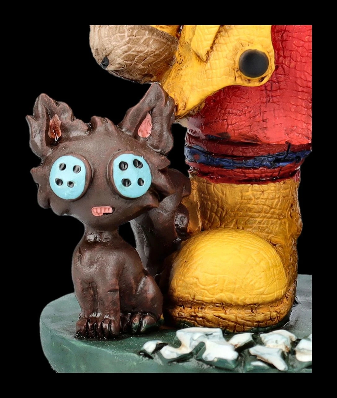 ‚Hab mich lieb‘, scheint das kleine Pinheads-Monsterchen zu sagen. In dem gelben Mäntelchen und dem Kleid aus der Altkleidersammlung, mit den blauen Haaren und den Knopfaugen schaut das kleine Monster eher traurig aus. Auch das Hündchen an ihrer Seite wirkt recht brav, obwohl die Knochen zu Füßen des kleinen Monsters nicht so harmlos wirken. Die niedliche Pinheads-Figur ist aus liebevoll handbemaltem Kunststein (Polyresin) und 12 cm hoch, 7 cm breit und 6,5 cm tief. Sie ist ein tolles Geschenk für Pinheads-Freunde und darf natürlich in keiner Pinheads-Sammlung fehlen.
