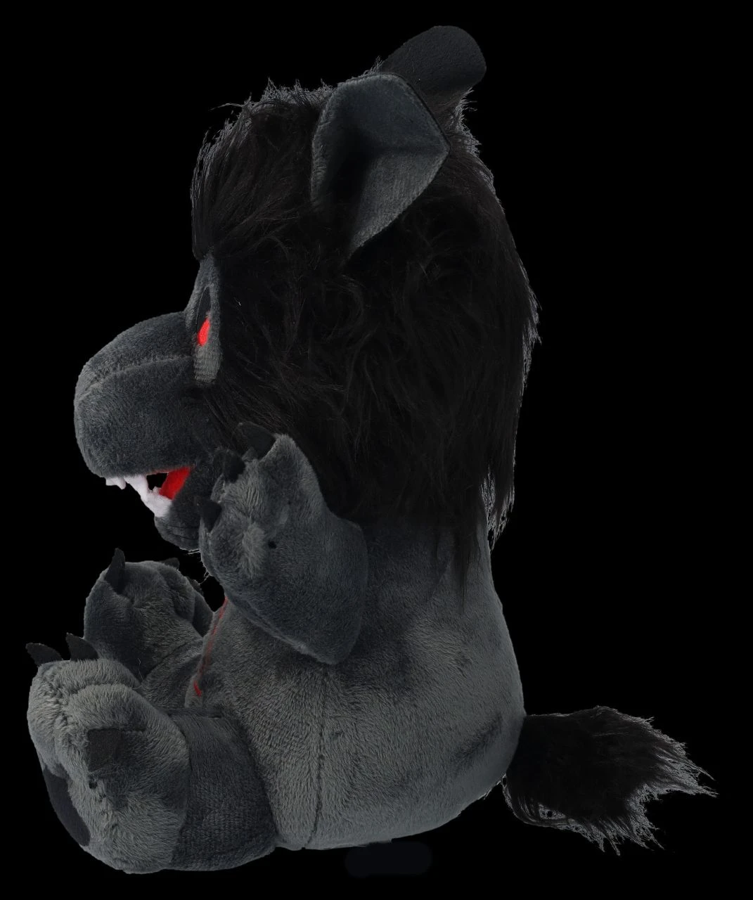 Normalerweise wird der Werwolf nur in Vollmondnächten gefährlich, also darf man diesen kuscheligen Gothic-Werwolf in den anderen Nächten durchaus streicheln. Nur in den Vollmondnächten soll man vorsichtig sein, denn an dem roten Mal auf der Brust und den blutroten Augen kann man auch sehen, dass der Werwolf zum geheimnisvollen Club der Gothic-Kuscheltiere gehört. Das dritte Auge in dem Zeichen beweist, dass er auch den Blick für die Zwischenwelt hat. Das putzige Plüschtier aus kuschelig weichem 100 % Polyester ist 22,5 cm hoch, 20 cm breit und 19 cm tief. Für Babies und Kleinkinder ist der Werwolf nicht geeignet, aber wer sagt denn, dass nur Kinder Kuscheltiere haben dürfen…. Mit den anderen Kuscheltieren aus dieser Reihe bildet er gleich eine tolle Gemeinschaft und ist das perfekte Geschenk zum Sammeln.