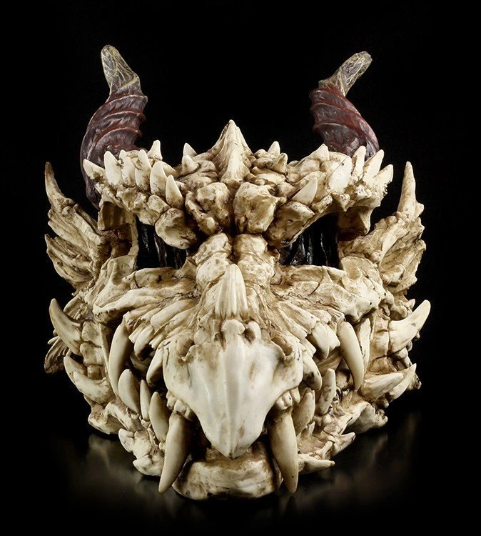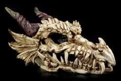 Der Mythologie nach ist der Drache ein Lebewesen mit beängstigender Kraft. Er gilt als Krafttier. Und auch diese Darstellung des Drachen-Totenkopfs zeigt seine Stärke. Durch seine Größe entfaltet der Schädel seine volle Wirkung in deinem Raum.