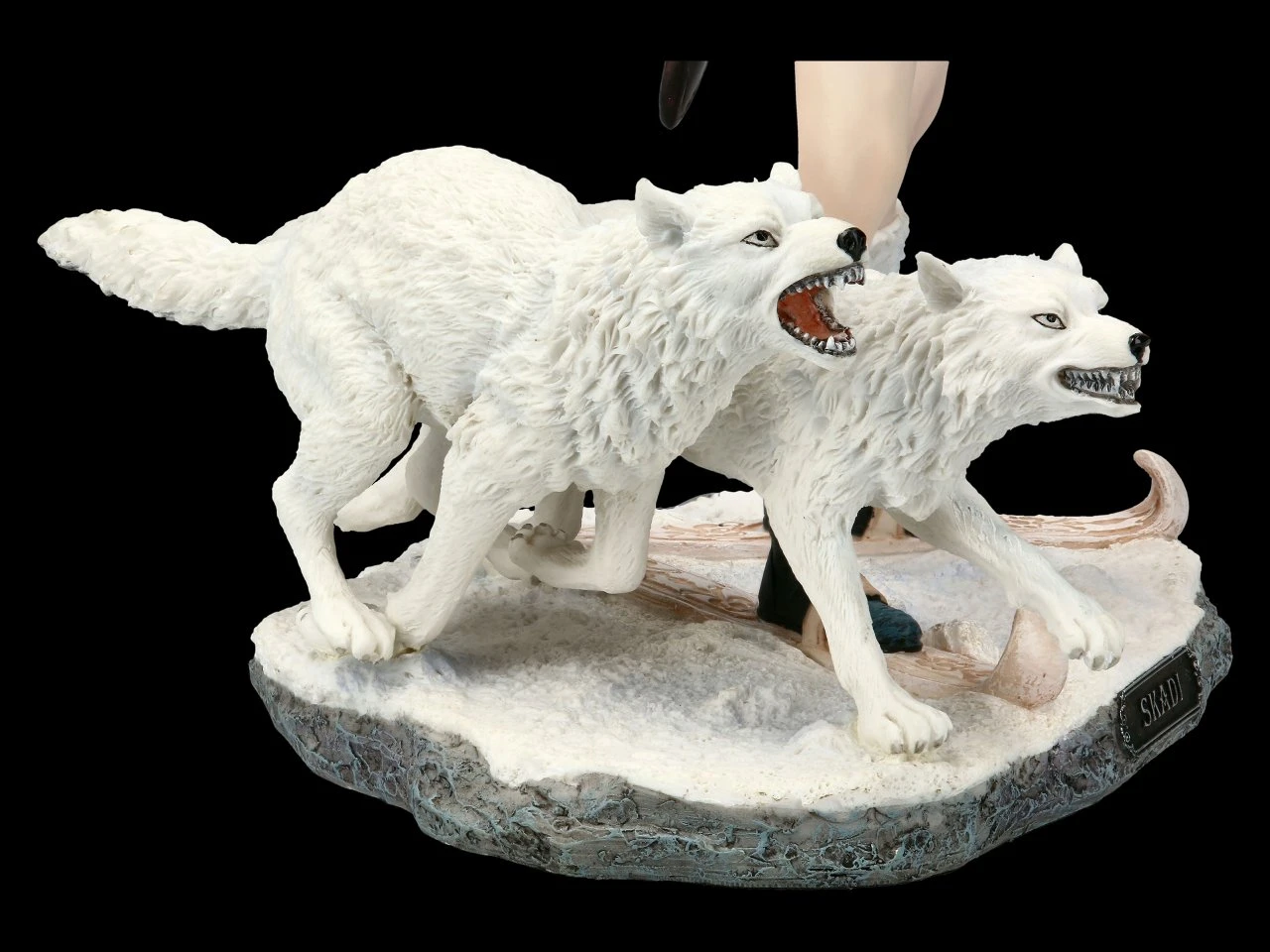 Skadi war die nordische Göttin der Jagd und des Winters. Zusammen mit ihren weißen Wölfen liebt sie es nachts auf der Suche nach Beute durch den Wald zu streifen.