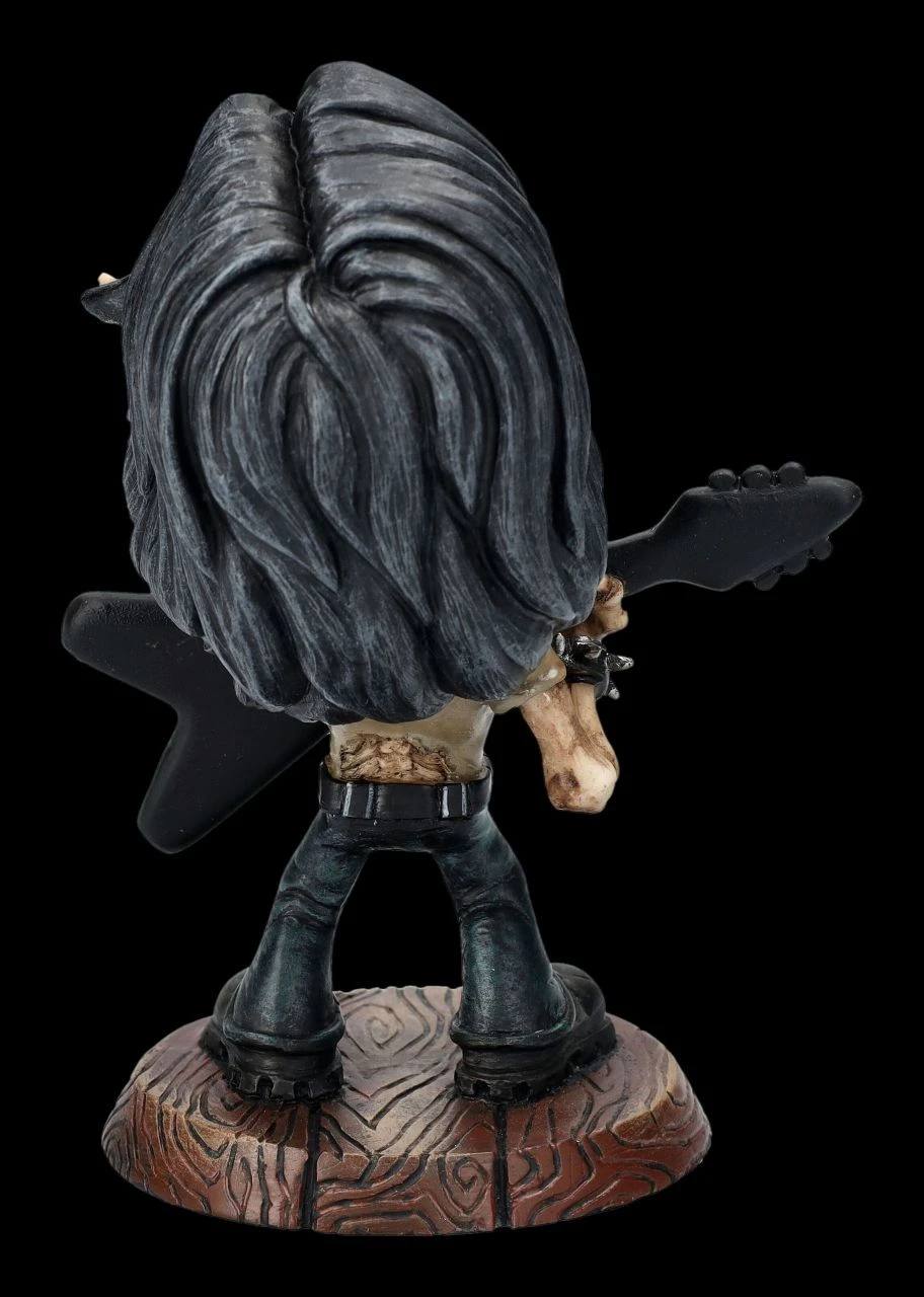 Dieser coole Skelett-Pocket Rocker aus der Künstlerwerkstatt von James Ryman geht voll ab. Nicht nur ein begnadeter Gitarrist war er anscheinend schon zu Lebzeiten, sondern auch ein begeisterter Sänger. Die 15,5 cm hohe, 10 cm breite und 9 cm tiefe Skelett Figur eines Gitarrist Pocket Rocker wurde detailreich aus handbemaltem Kunststein (Polyresin) geschaffen. Er ist nicht nur ein tolles Geschenk für James Ryman-Fans, sondern auch ein perfektes Band-Maskottchen und kommt inklusive eines passend bedruckten Geschenkkartons.
