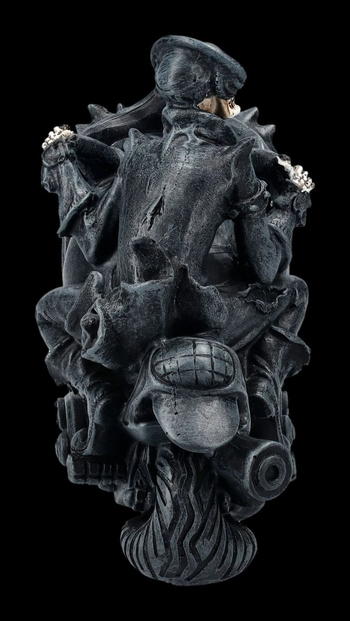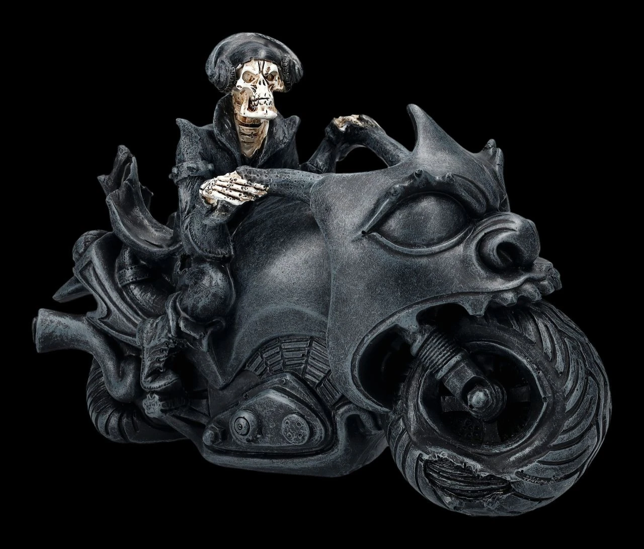 Normal können andere – aber was ist schon normal? Für diesen rebellischen Biker ist auf jeden Fall Geschwindigkeit alles. Wer sich dieses wilde Skelett auf dem schwarzen Bike auf seinen Schreibtisch stellt, sorgt garantiert für Gesprächsstoff. Die Skelett-Figur auf dem Motorrad wurde detailreich aus handbemaltem Kunststein (Polyresin) gefertigt. Der 13,5 cm hohe, 19 cm breite und 7,5 cm tiefe Rebel Rider auf dem Trip durch die Hölle ist echt mal ein cooles Geschenk für einen Biker.