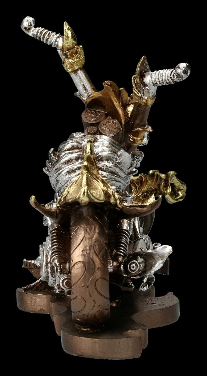 Dieses Skelett-Motorrad! WOW – wenn das Bike nicht cool ist. Auf der Straße wäre es der absolute Hammer, aber auch auf dem Schreibtisch oder im Regal ist das Skelett Motorrad mit Sicherheit DER Hingucker.und für jeden Biker ist die detailliert handbemalte, aus Kunststein (Polyresin) gefertigte Dekofigur Pedal to the Metal ein beeindruckendes Geschenk. Mit der Höhe von 20 cm, der Breite von 32 cm und der Tiefe von 12,5 cm passt das Bike auch super gut auf jede Werkstattbank.