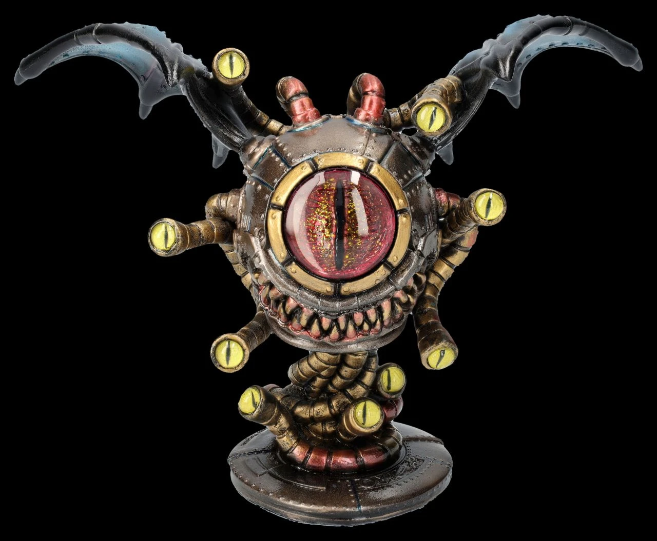 Unglaublich viele Details weist diese herrliche Steampunk Figur des Octobat Mecha auf. Mit dem riesigen Auge hinter dem Taucherhelm hat er alles im Blick. Seltsamerweise hat der Octobat Fledermausflügel und seinen gefletschten Zähnen sollte man sicher auch nicht zu nahe kommen. Die Kreuzung zwischen Octopus und Fledermaus stammt aus der Studio Collection von Veronese. Die fantastische, aber ziemlich verrückt aussehende Steampunk Figur wurde aus hochwertigem Kunststein (Polyresin) gefertigt und wirkt durch die Bronzierung und detailreiche Colorierung sehr technisch, aber auch außerordentlich dekorativ und faszinierend. Der 11,5 cm hohe, 16 cm breite und 9 cm tiefe Octobat Mecha ist ein absolut perfektes Geschenk für alle Steampunk Fans.