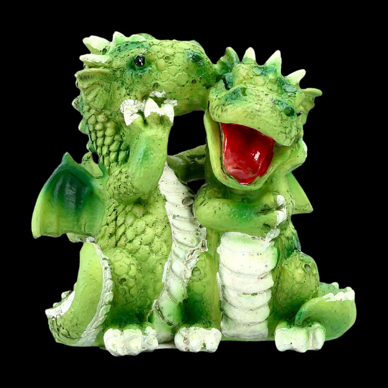 Wie süß ist das denn?! Die beiden kleinen grünen Drachen haben sich ja sooo lieb. Ihr glückliches Lachen ist einfach ansteckend. Die beiden süßen Drachen aus handbemaltem Kunststein (Polyresin) sind eine Liebeserklärung an die Freundschaft. Sie sind 8,5 cm hoch, 9,0 cm breit und 6,0 cm tief und ein absolut niedliches Geschenk für alle Drachen-Freunde.