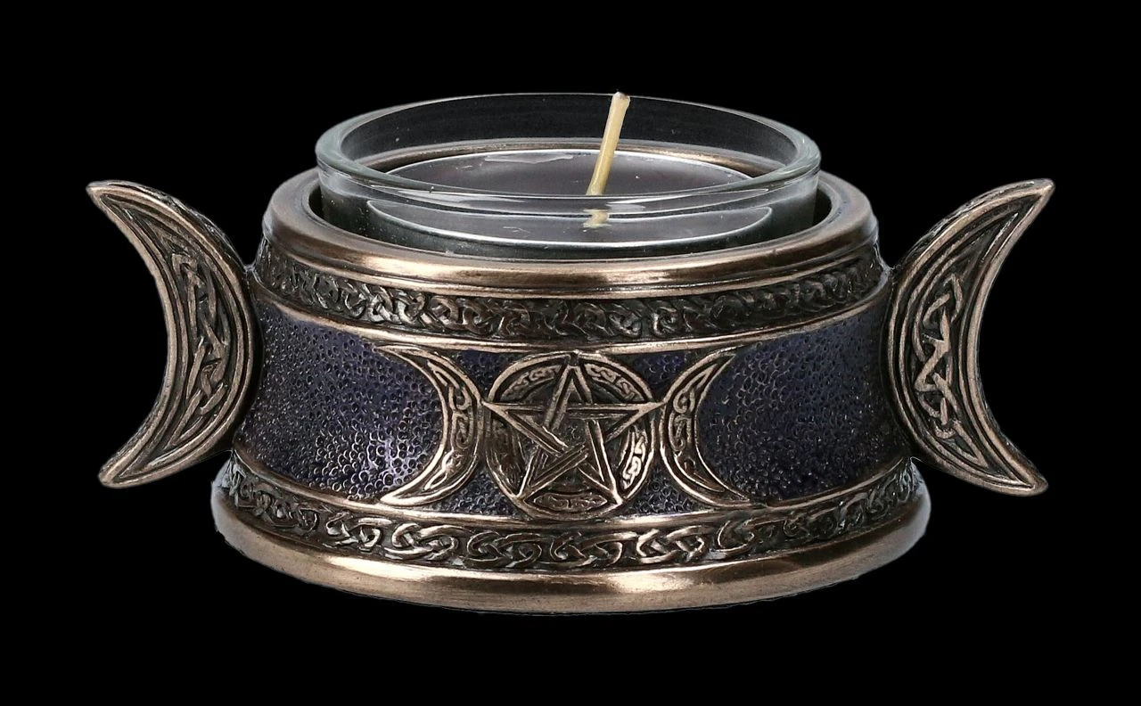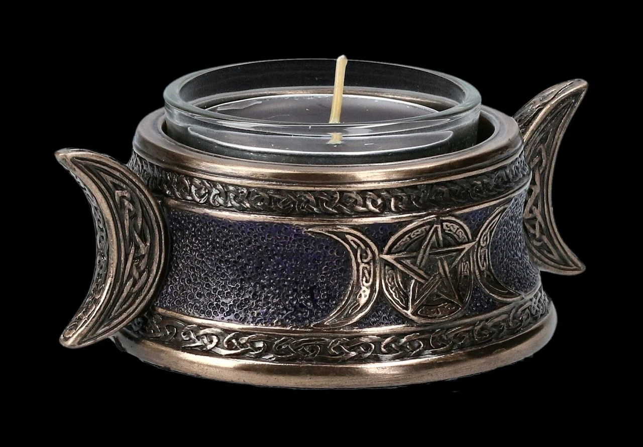 Mystischer Kerzenhalter mit Monden und Pentagramm