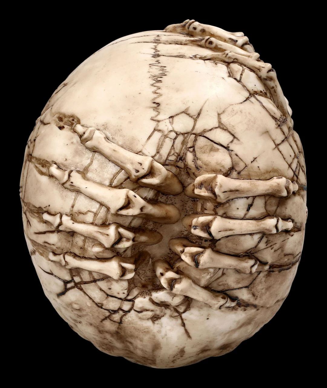 Wehe dem, der sich fürchtet. Wenn sich skelettierte Finger aus diversen Löchern des Schädels bohren, stellt sich die Frage, ob hier das Böse versucht auszubrechen. Der Totekopf wurde von dem berühmten Fantasy- und Horrorkünstler James Ryman gestaltet. Er ist aus detailliert handbemaltem Kunststein (Polyresin) und hat eine Höhe von 14 cm, eine Breite von 12 cm und eine Tiefe von 18 cm. Selbst für alle Horrorfans ist der Totenkopf ‚Breaking Out‘ von James Ryman ein außergewöhnliches Geschenk und wird inklusive einer Geschenkverpackung verschickt.