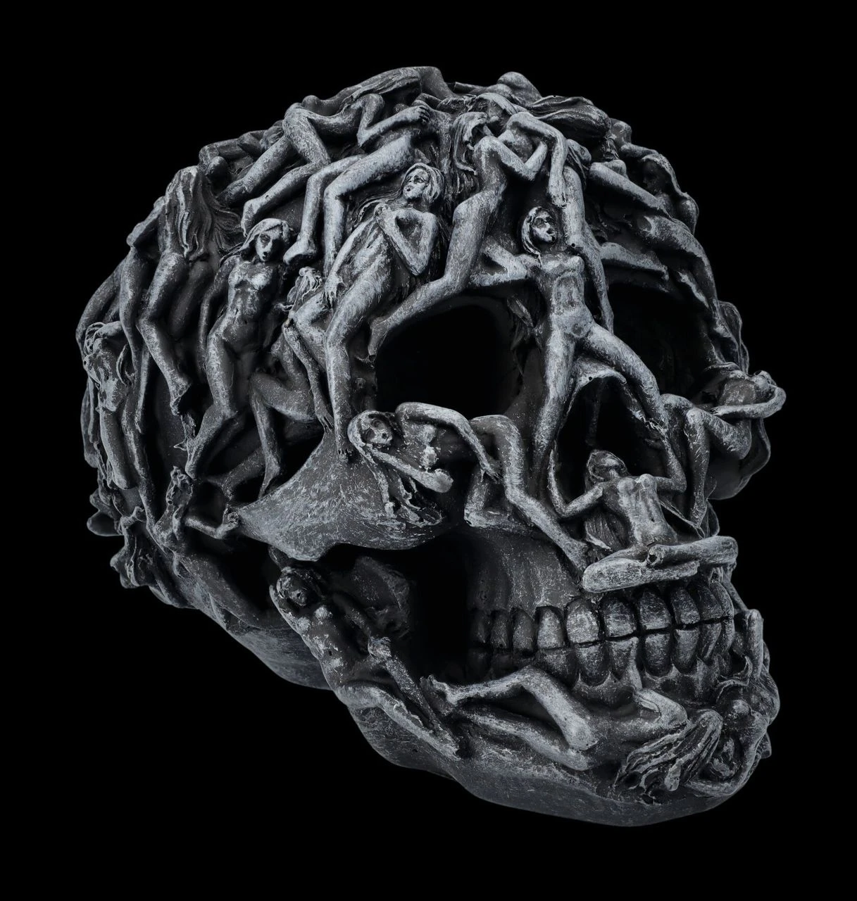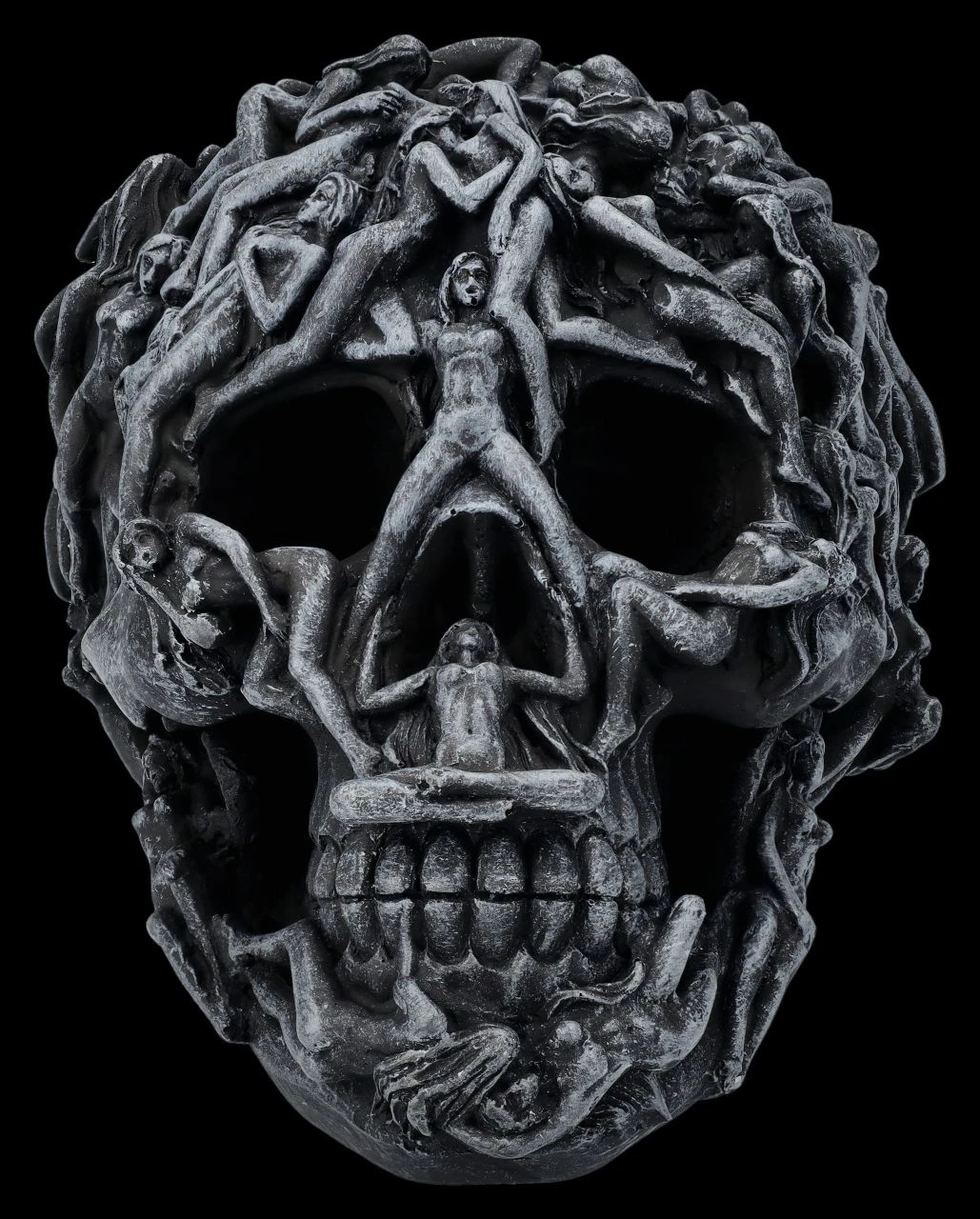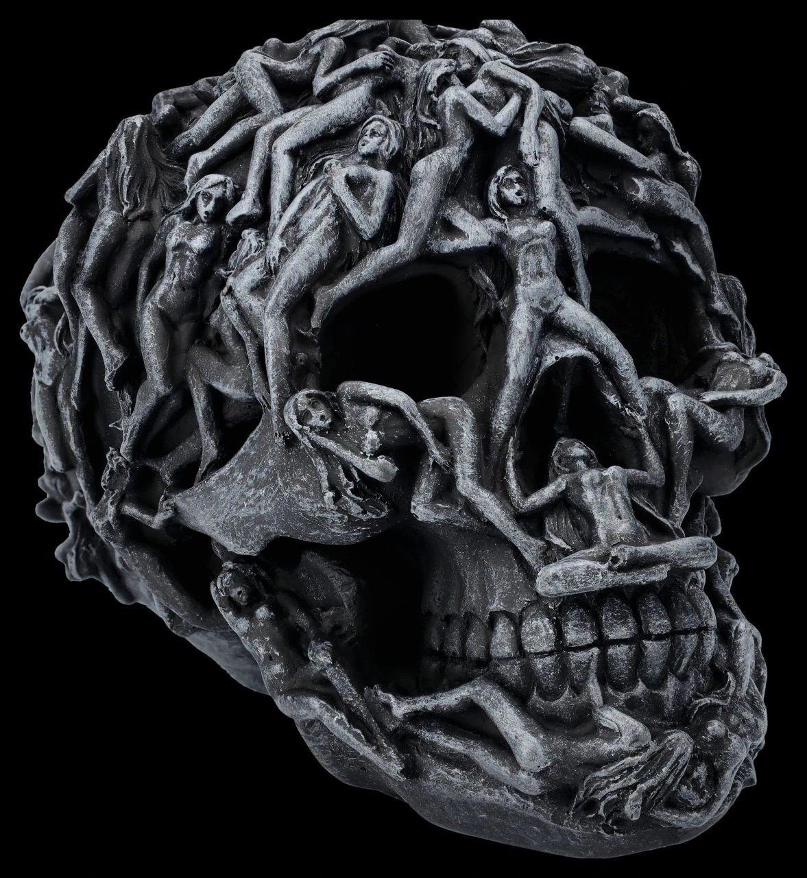Gefangene Seelen winden sich auf diesem schwarzen Totenkopf. Sie sind gefangene ihrer Lust – es gibt kein Entkommen aus der Hölle. Jedes Detail dieses Schädels ist perfekt herausgearbeitet und für Liebhaber des Morbiden ein Muss.