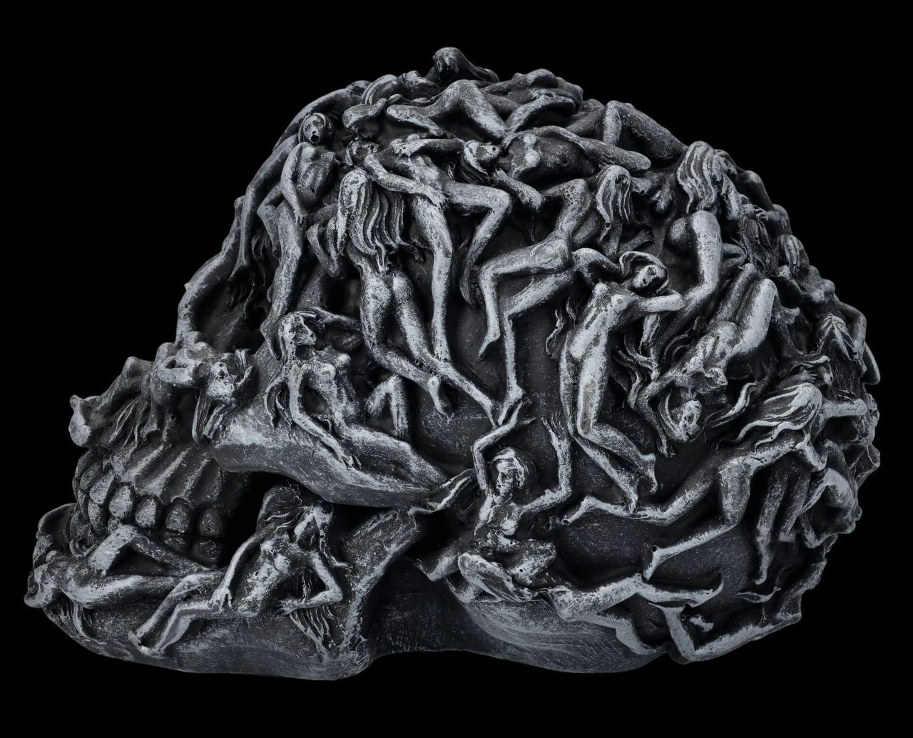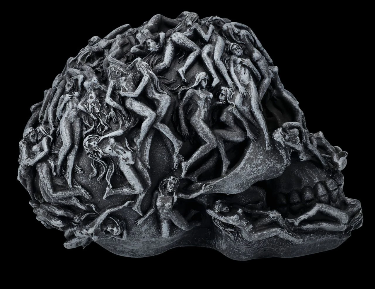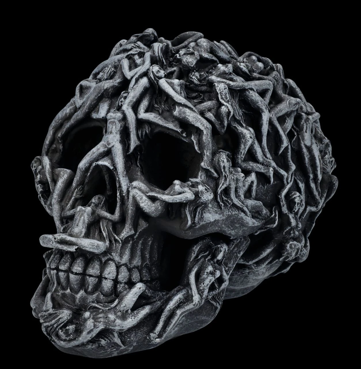 Gefangene Seelen winden sich auf diesem schwarzen Totenkopf. Sie sind gefangene ihrer Lust – es gibt kein Entkommen aus der Hölle. Jedes Detail dieses Schädels ist perfekt herausgearbeitet und für Liebhaber des Morbiden ein Muss.