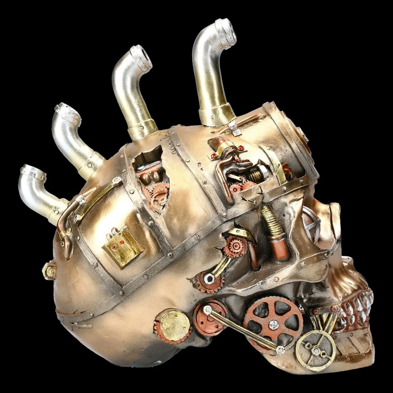 Er sieht aus, als wäre er aus den Tiefen des Ozeans aufgetaucht, wo er aus den Resten eines untergegangenen Schiffes zusammengebaut wurde. Mit so faszinierend vielen Details wurde dieser 19,5 cm hohe, 12 cm breite und 20 cm tiefe Totenkopf mit den Pipes aus Kunststein (Polyresin) gefertigt und die bronzefarbene Handbemalung lässt den Totenkopf Pipe Dream sehr technisch aussehen. Eine coole Deko, die mit Sicherheit Ihre Besucher erstaunen wird.