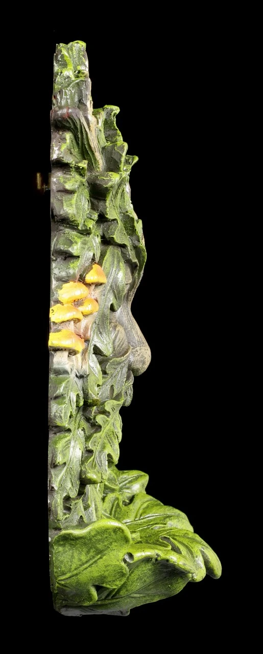 Frech grinst der Waldgeist jeden an, der das Zimmer betritt. Er ist der Hüter der Wälder und immer zu Späßen aufgelegt. Das Wandrelief bringt Magie und Natur in Ihre Wohnung. Die Wanddeko wurde aus hochwertigem Kunststein (Polyresin) angefertigt und handbemalt.