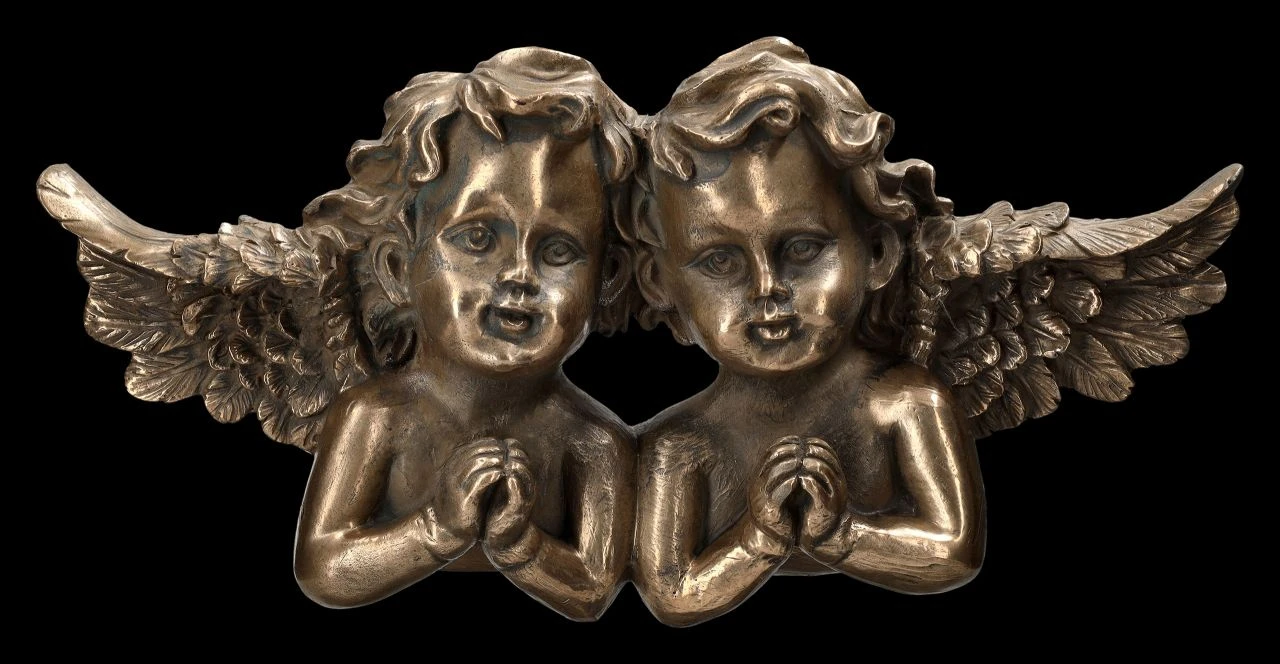 Zu der großen Engelschar in unserem Shop gehört auch diese beschützende Wanddeko mit den beiden betenden Putten. Die Wanddeko zum Hängen wurde aus bronziertem Kunststein (Polyresin) gefertigt und ist 12 cm hoch, 23 cm breit und 4 cm tief. Wenn Sie jemandem zeigen möchten, dass immer Schutzengel für ihn da sind, dann ist diese Wanddeko ein wunderbares und vielsagendes Geschenk.