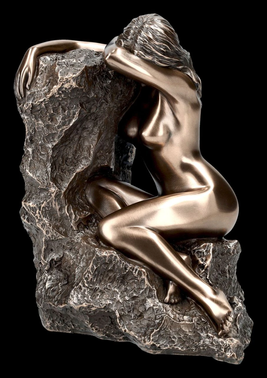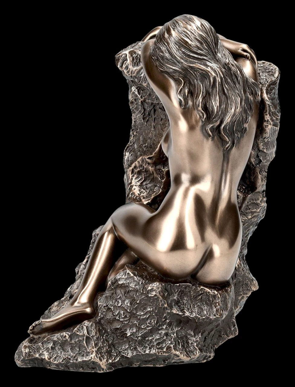 Erschöpft lehnt sich die junge nackte Frau an den Felsen, zu dem sie sich offenbar gerade noch retten konnte. Ihr Kopf ruht auf ihren Armen und Ihre langen Haare fallen scheinbar nass über ihre Schultern. Obwohl sie beinahe mit dem Felsen zu verschmelzen scheint, ist die Eleganz der nackten Schönheit nicht zu übersehen. Die wunderschöne weibliche Akt-Figur aus der Studio Collection von Veronese aus hochwertigem Kunststein (Polyresin) wurde aufwändig und edel bronziert. Die raffiniert inszenierte Silhuette dieser 15,5 cm hohen, 13 cm breiten und 10 cm tiefen Akt-Figur wirkt nicht nur erotisch, sondern auch sehr stilvoll. Sie ist ein wirklich edler Blickfang in jedem Ambiente und so auch ein wunderbares Geschenk für jeden, der die Schönheit dieser Figur zu schätzen weiß.