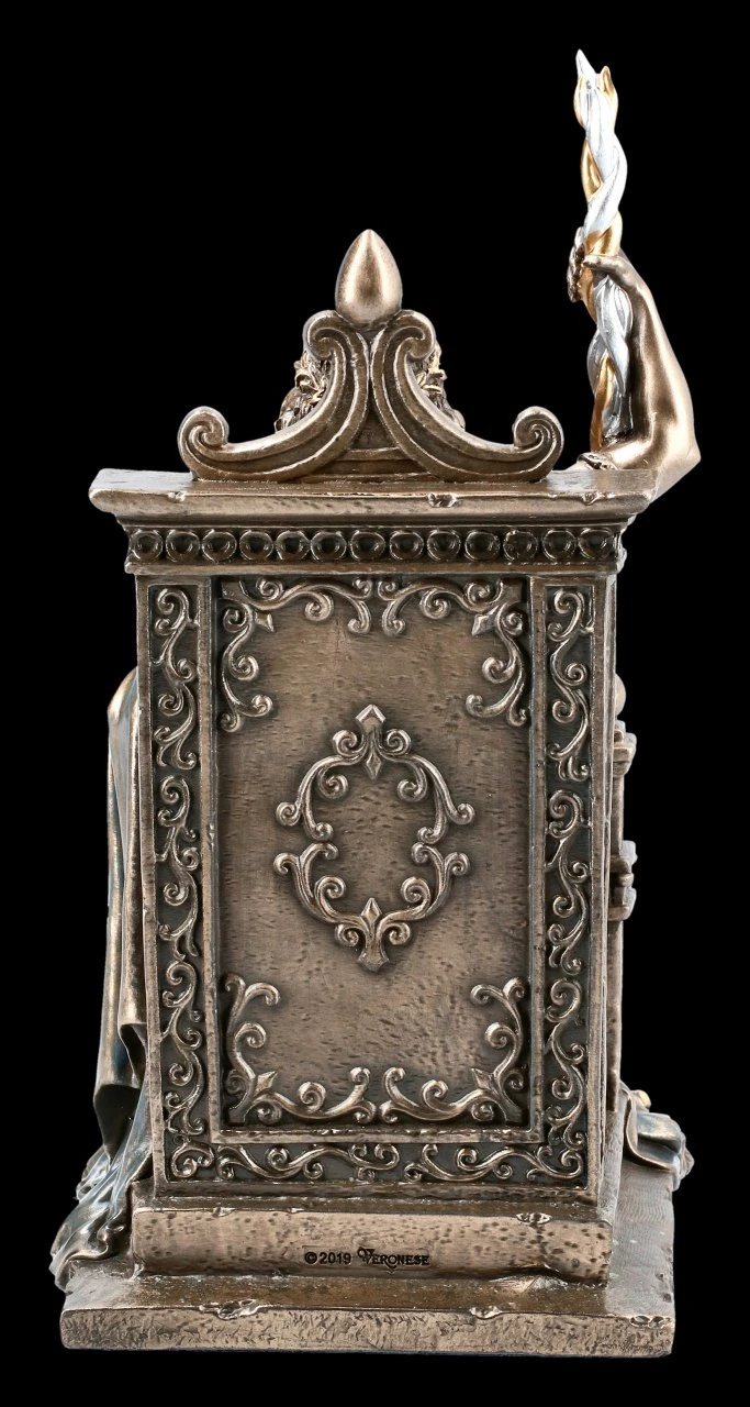 Hoch oben im Himmel thront der griechische Göttervater Zeus im Olymp. In einer Hand hält er das Blitzbündel, das er von den Zyklopen erhielt. Die edle und hochwertige Statuette des Göttervaters Zeus auf dem Thron wurde aus bronziertem und colorierten Kunststein (Polyresin) gefertigt. Sie stammt aus dem Haus Veronese und gehört zur The Triumphs of Humanity Collection und ist ein fantastisches Geschenk für jeden Sammler.